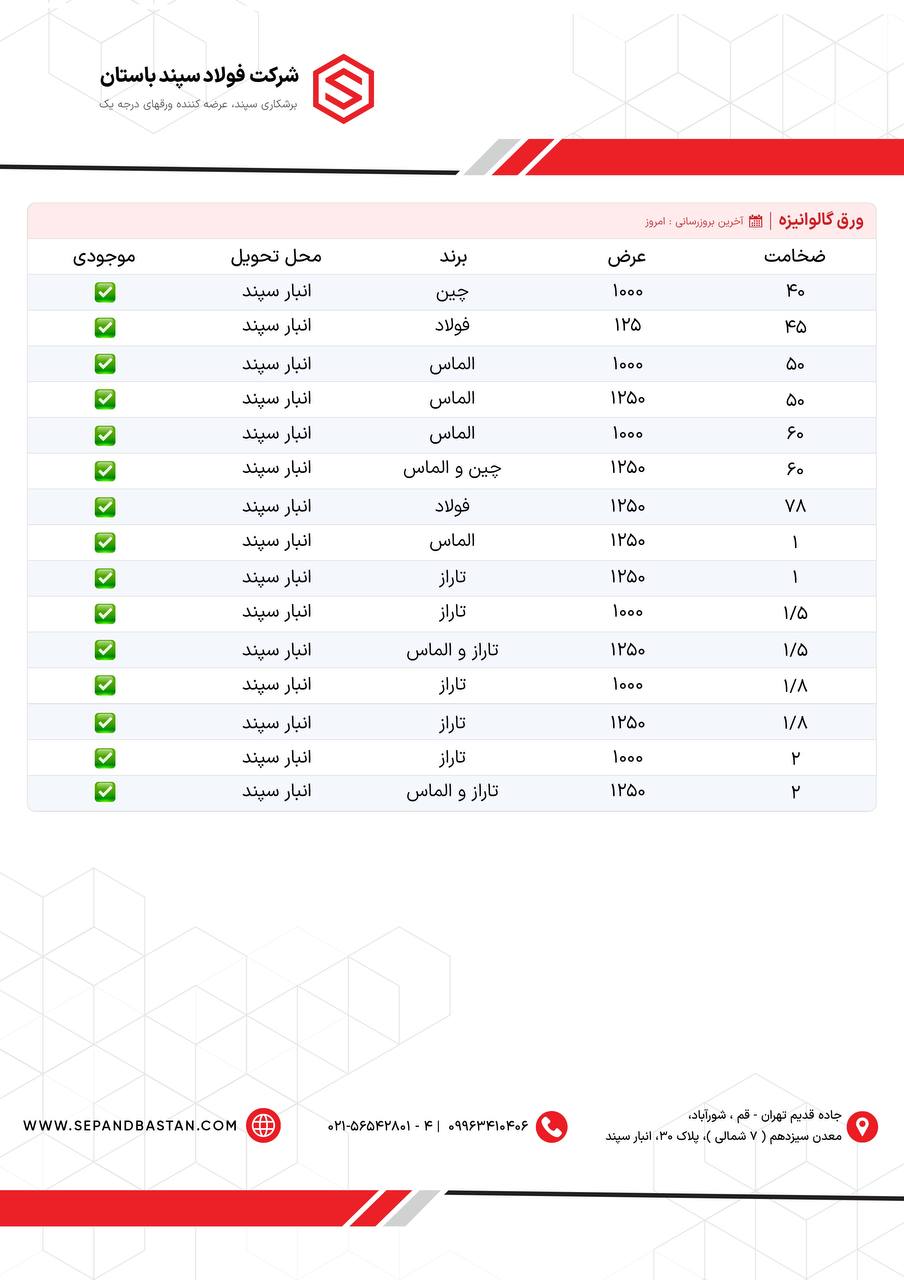 ⚜️#فولاد_سپند_باستان ⚜️🌀عرضه کننده انواع ورق های فولادی ✅ ورق سیاه ✅ ورق روغنی ✅ ورق گالوانیزه و رنگی 💢برای اطلاع از قیمتها تماس بگیرید .📱 تلفن های واحد فروش: ...
