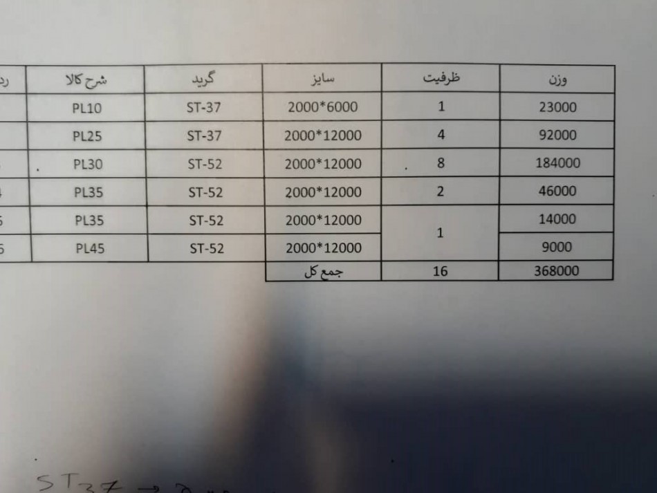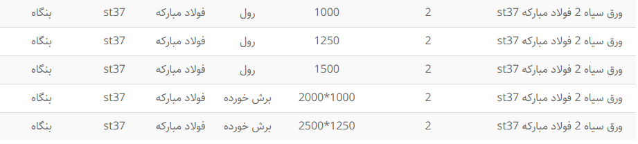جهت مشاهده درخواستهای خرید کلیک کنید.صورت بار ورق گرم (سیاه)