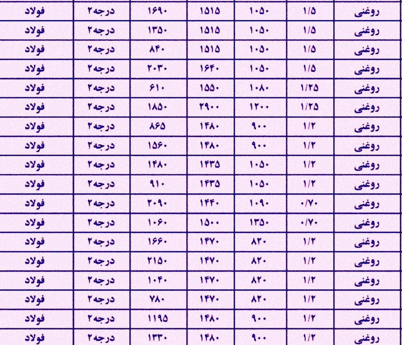 🔵🔵🔵 ورق روغنی 🔵🔵🔵 🟩 60 عرض 1000 فولاد st12 (ظرفیت) 🟩 70 عرض 1360 فولاد dc04 (11تن) 🟩 70 عرض 1545 فولاد dc04 (ظرفیت) 🟩 80 عرض 803 فولاد dc04 (5تن) 🟩 1/1 عرض ...