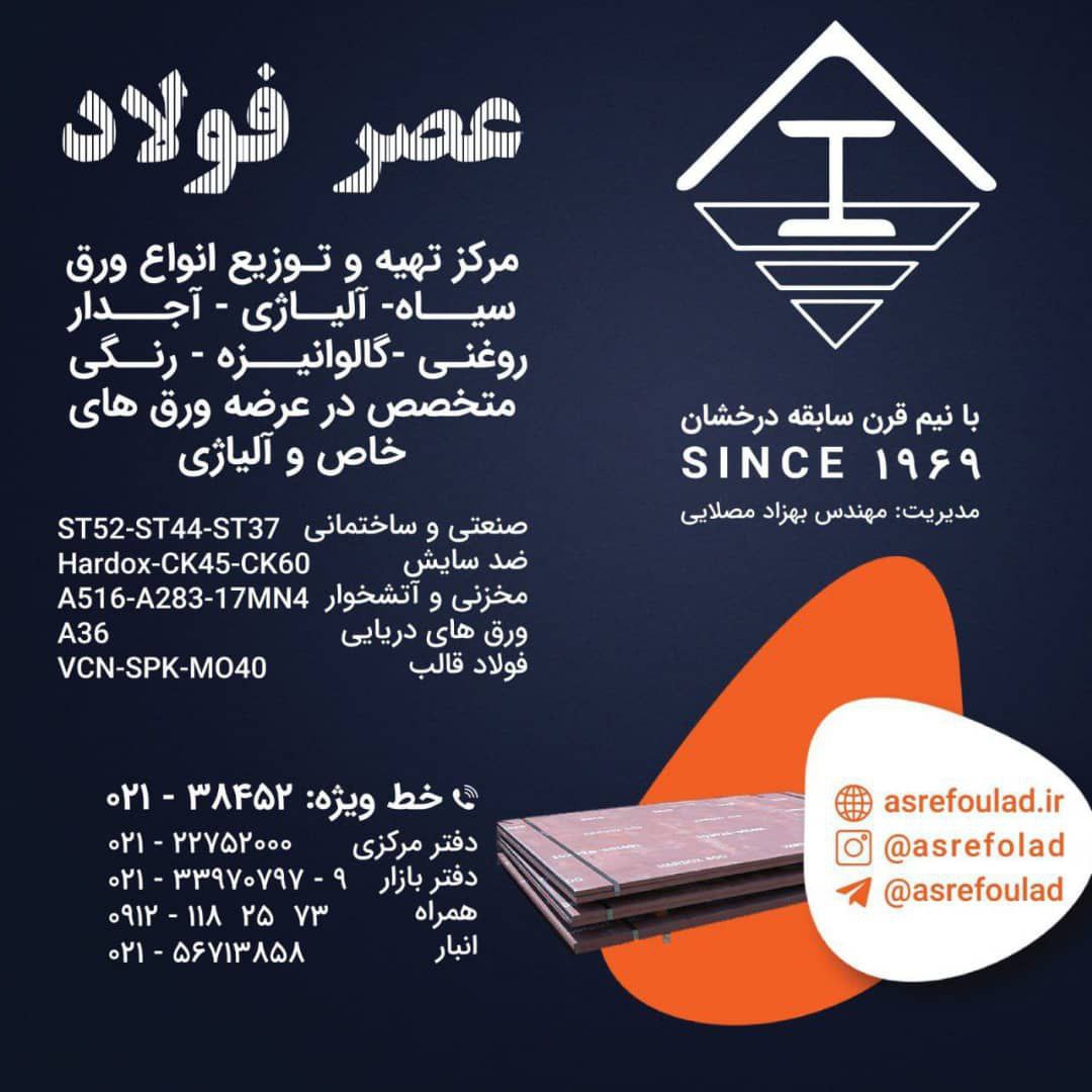 💠 عصر فولاد کاویان 💎 با بیش از نیم قرن سابقه 🔴 مرجع تخصصی ورق های آلیاژی 🔴 تخصصی ترین مرجع عرضه انواع ورق های آلیاژی، مبارکه و اکسین ✅ ورق اکسین 🔘st52 -- از ...