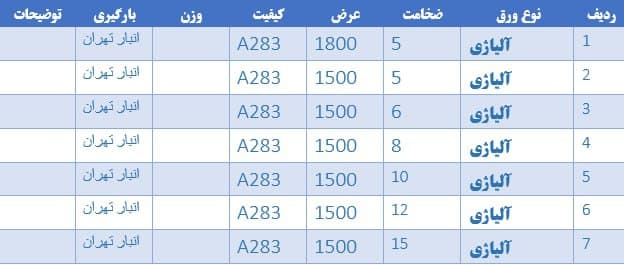 A283gr C بارگیری انبار تهران ورق ۸ میل ۶*۲ ورق ۱۰ میل ۶*۲ ورق ۱۲ میل ۶*۲ ورق ۱۵ میل ۶*۲ ورق ۲۰ میل ۶*۲ ورق ۲۵ میل ۶*۲ ورق ۳۰ میل ۶*۲ ورق ...