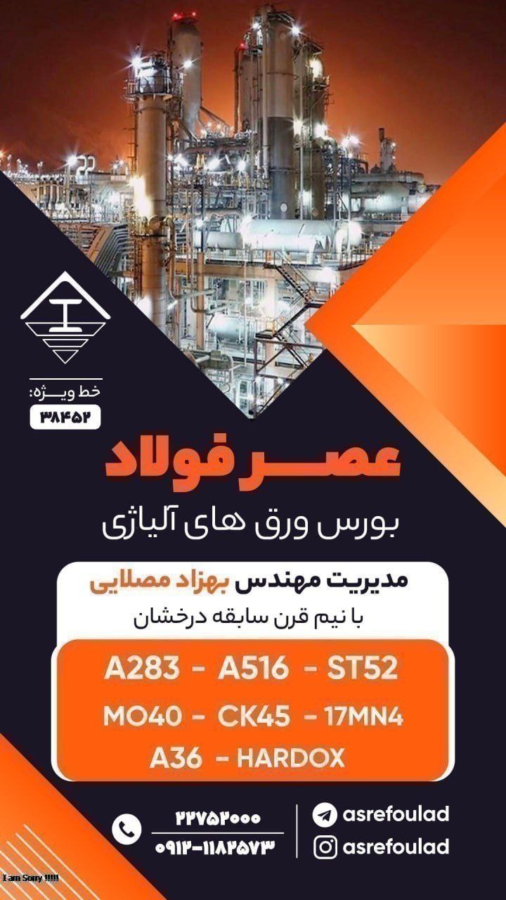 #عصر_فولاد_کاویان 💠 عصر فولاد کاویان 💎 با بیش از نیم قرن سابقه 🔴 مرجع تخصصی ورق های آلیاژی 🔴 تخصصی ترین مرجع عرضه انواع ورق های آلیاژی، مبارکه و اکسین ✅ ورق اکس ...