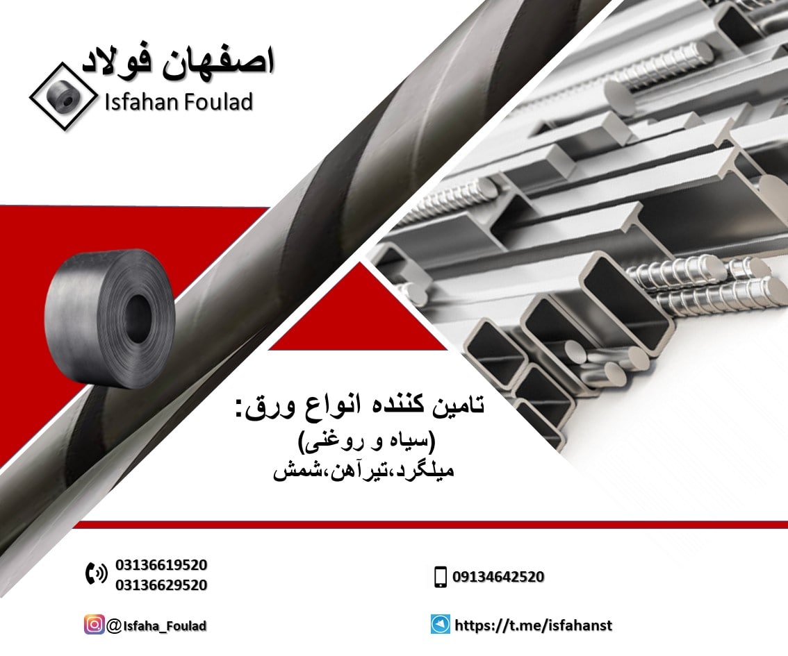 #اصفهان_فولاد ✅بازرگانی مقاطع فولادی 🔻تیرآهن 🔻میلگرد ✅بازرگانی انواع ورق 🔺ورق سیاه (فولاد مبارکه،فولاد اصفهان،اکسین و...) 🔺ورق روغنی برای کسب اطلاعات بیشتر ب ...