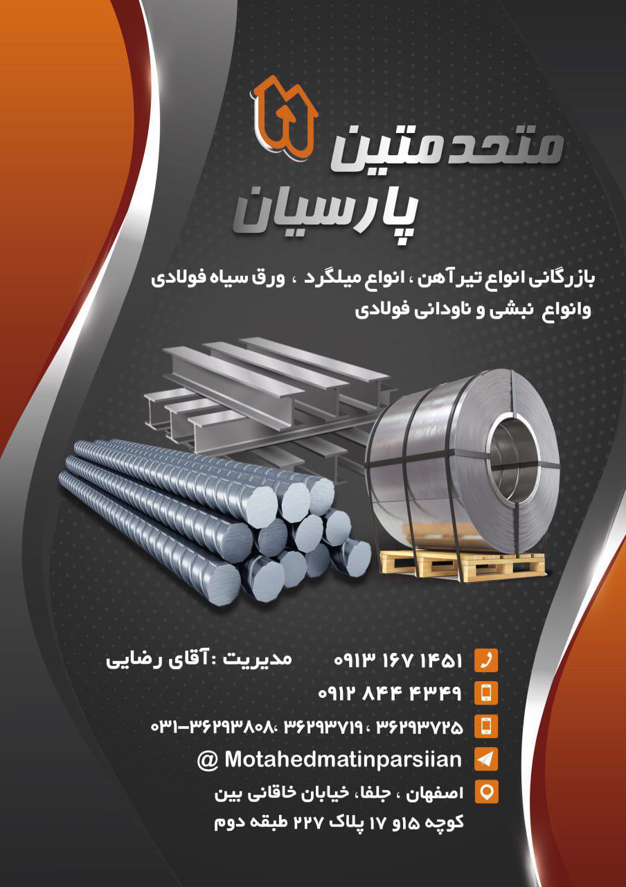 ⏳#متحد_متین_پارسیان⏳ 🔴تامین کننده انواع مقاطع فولادی 🔹تیرآهن 🔹تیرآهن نیمه سبک 🔹میلگرد 🔹نبشی 🔹ناودانی #جهت_مشاهده_پروفایل_متحد_متین_پارسیان👇 🪐https://fool ...