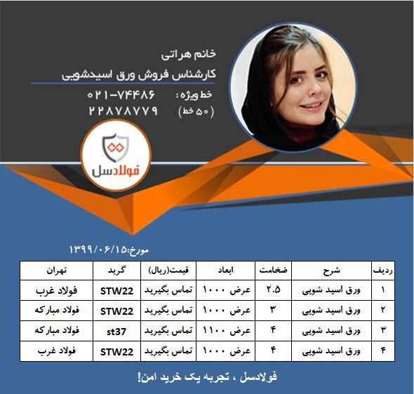 #ورق_اسید_شویی #فولادسل کارشناس فروش: هراتی داخلی:108 شماره تماس:09919597416