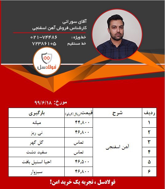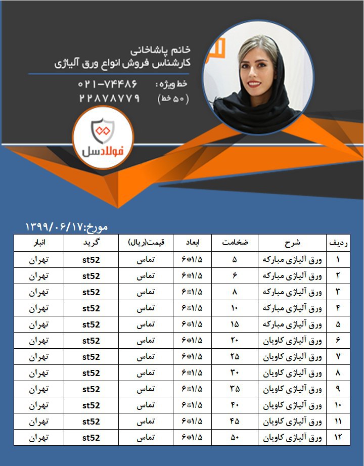 #ورق_گالوانیزه #فولادسل کارشناس فروش:اسکندری شماره تلفن:02174486 داخلی107 شماره تماس:09919597412