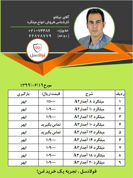 #میلگرد_آجدار #میلگرد #فولادسل کارشناس فروش: نیکخو داخلی: 112 شماره تماس:09919597418
