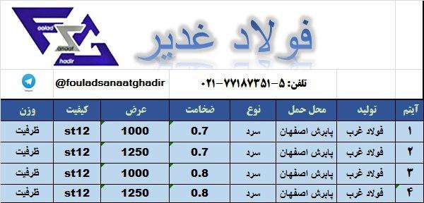 کویل گرم 8*1200 کیفیت st33 پابرش حومه تهران کویل گرم 7.6*1219 کیفیت st37 پابرش اصفهان کویل گرم 5.4*1400 کیفیت st37 پابرش اصفهان ورق گرم 6*1150*6000 کیفیت st33 ...