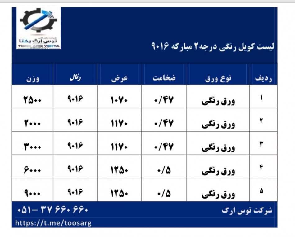 🟩رول0/40رنگی رئال 9016 عرض1000 درجه دو 2تن 🟩رول0/40رنگی رئال 5015 عرض1000 درجه دو 4تن