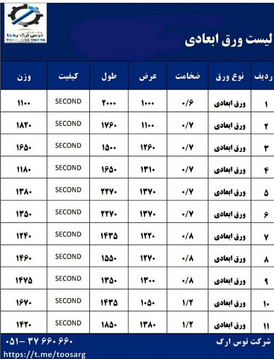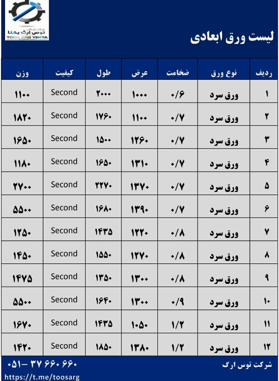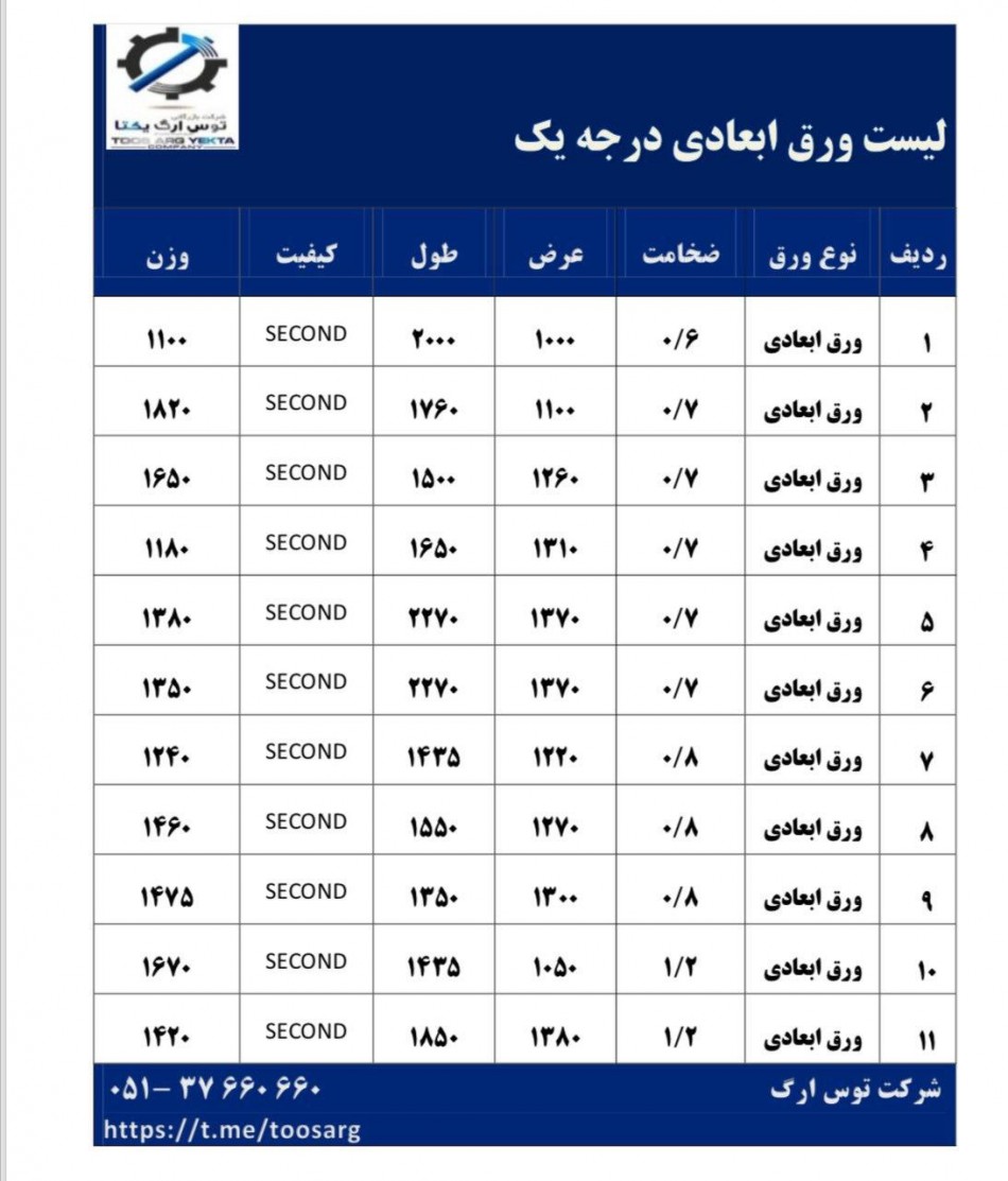 ۲ سیاه عرض ۱۲۵۰ St37 فولاد مبارکه انبار اصفهان ۲ عرض ۱۲۵۰ St24 سبا اعلام بار https://t.me/toosarg