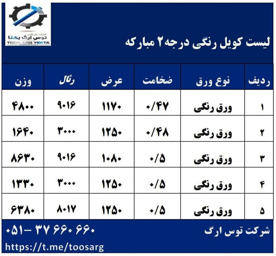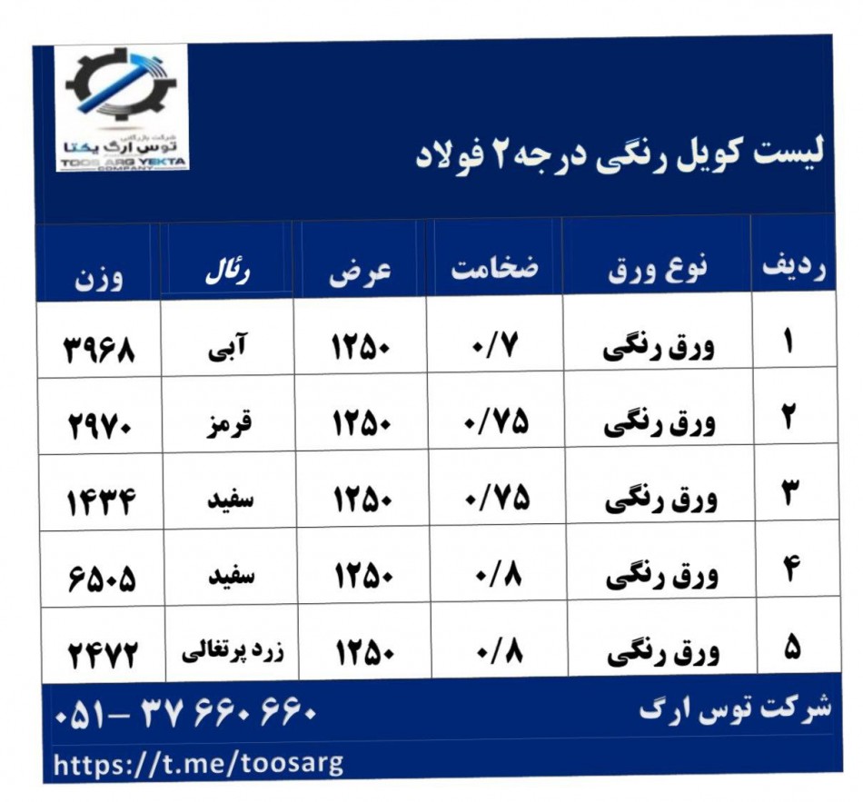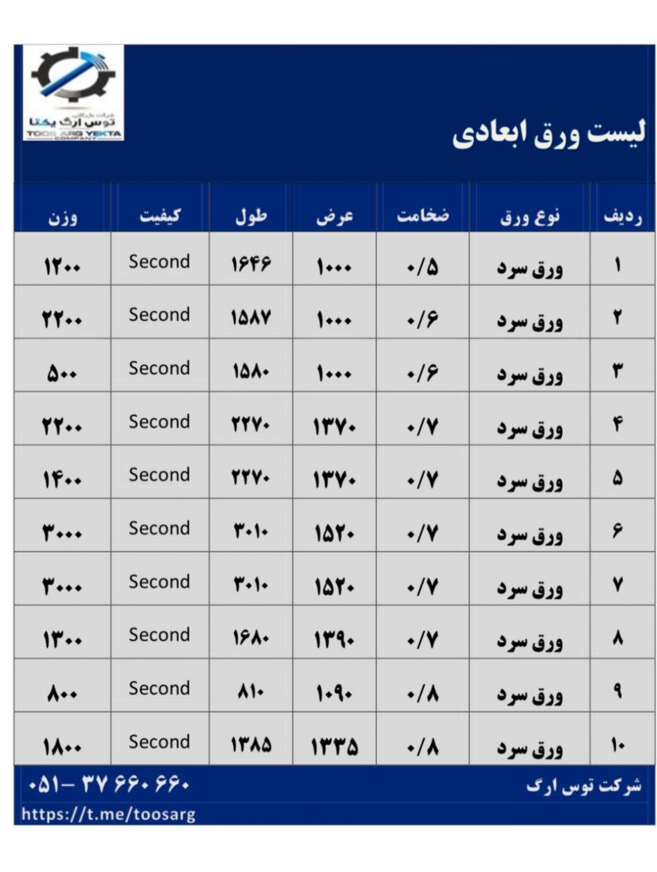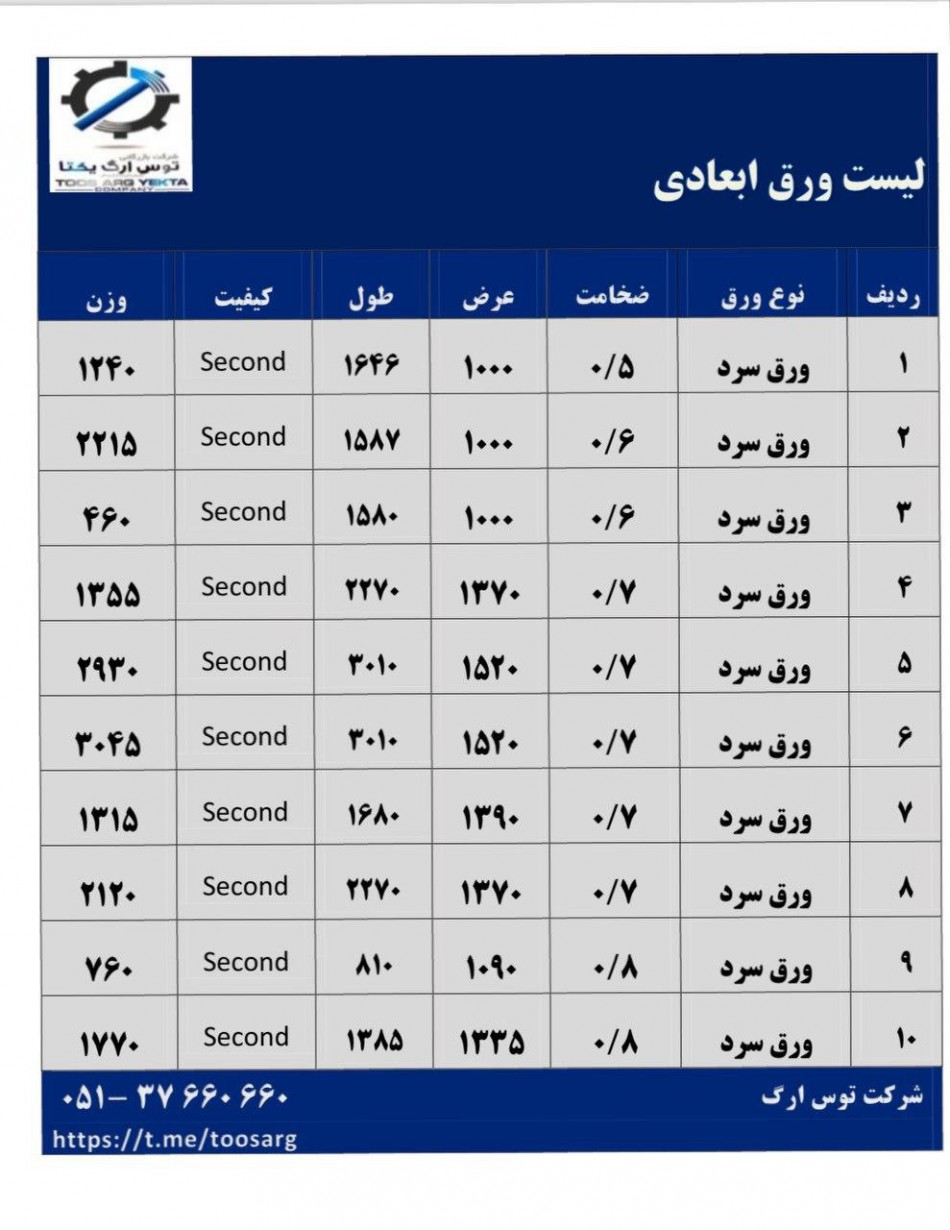 ۲ سیاه عرض ۱۲۵۰ St37 فولاد مبارکه انبار اصفهان ۲ عرض ۱۲۵۰ St24 سبا اعلام بار https://t.me/toosarg