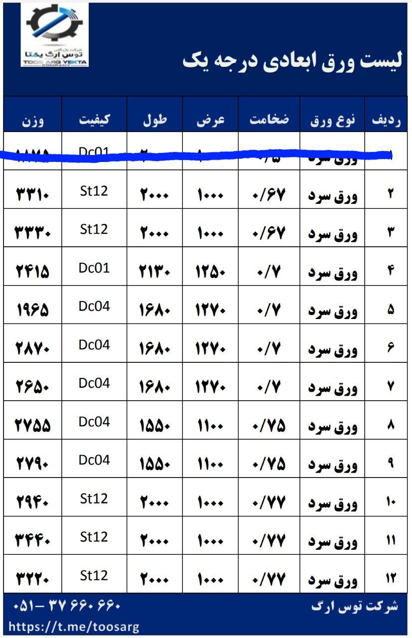 کلاف سرد درجه دو انبار اصفهان ۰.۶ عرض ۱۰۰۰ درجه دو ۵تن ۰.۷ عرض ۱۰۰۰ درجه دو ۷تن ۰.۹۴ عرض ۱۰۰ ...
