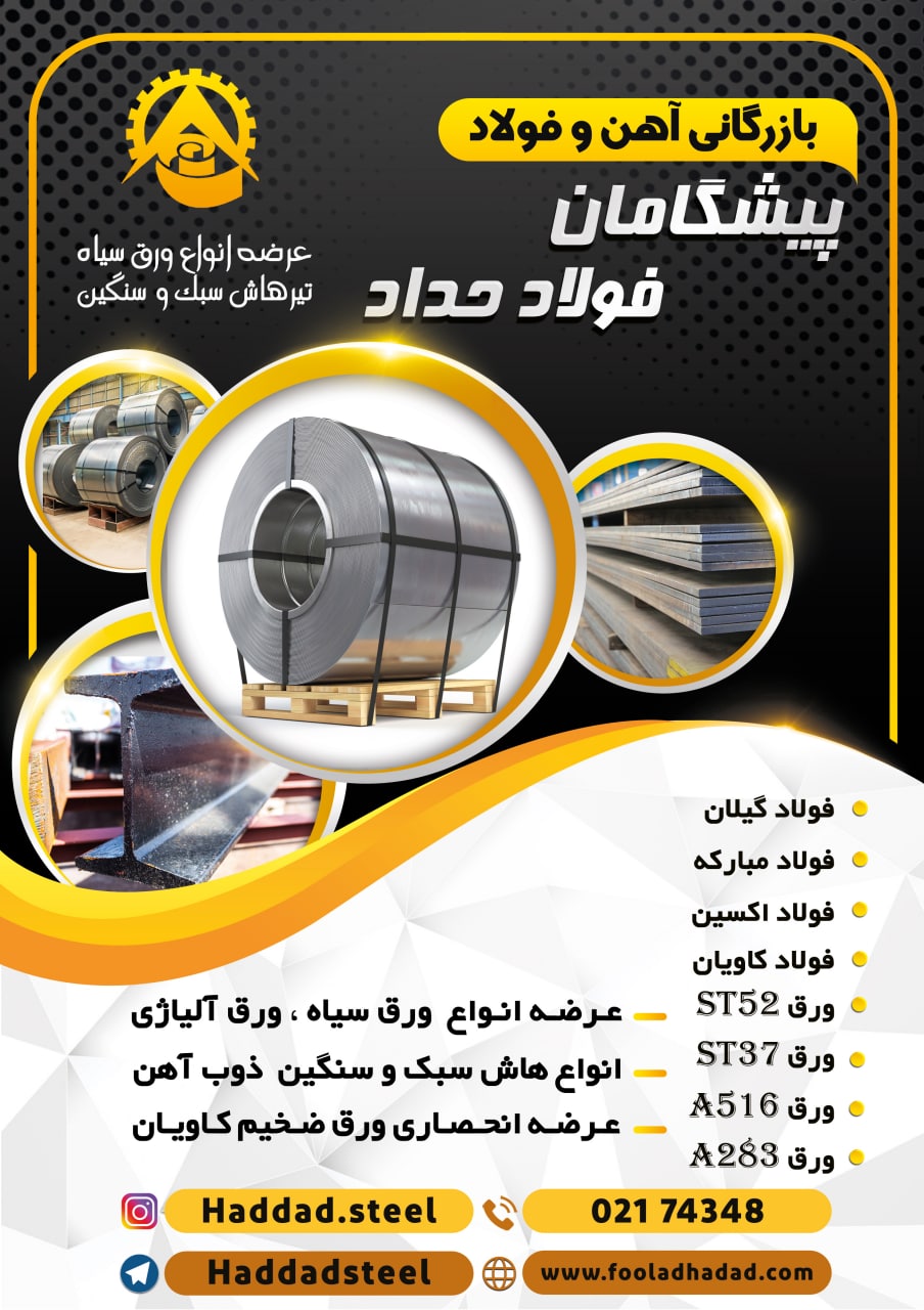 ⚜️فولاد حداد⚜️ ✅ورق آجدار : 📌انبار بهزاد نوین 🔸۲/۵میل (۲۰۰×۱۰۰) گیلان 🔸۳میل (رول×۱۰۰) گیلان 🔸۴میل (رول×۱۰۰) گیلان 🔸۵میل (رول×۱۰۰) ...