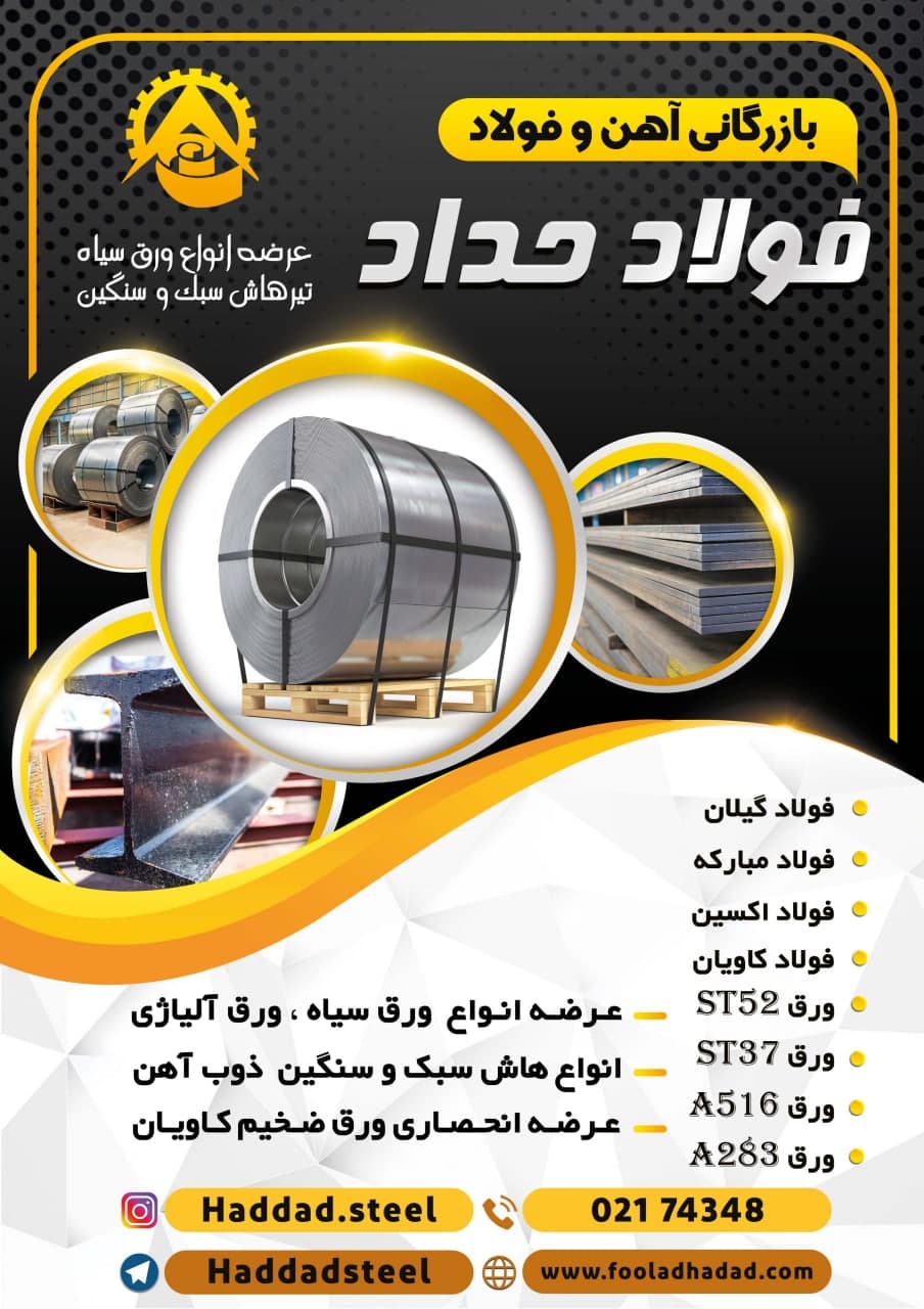 بازرگانی آهن و فولاد #حداد 🔸عرضه انواع ورق سیاه 2 تا 100 میل ،ورق آلیاژی st52 -st37-a516-a283 🔸فولاد مبارکه ,فولاد اکسین ,فولاد کاویان ,فولاد گیلان , فولا ...