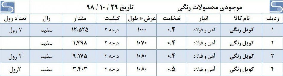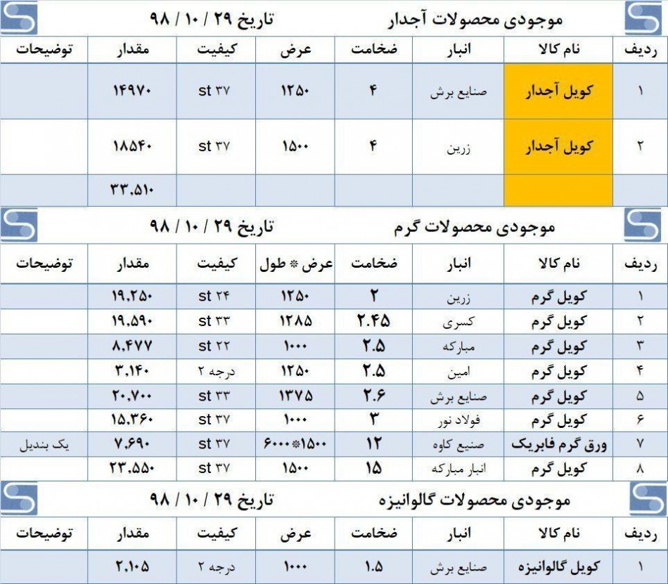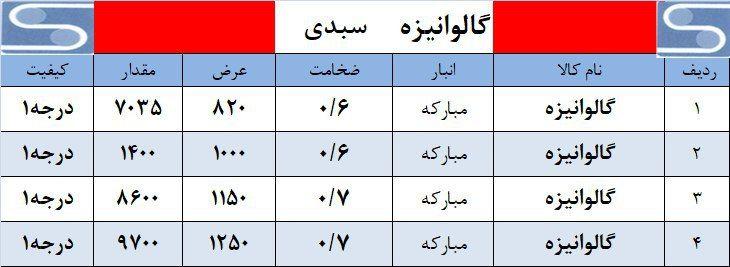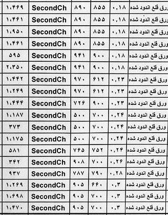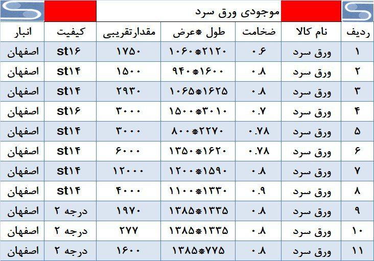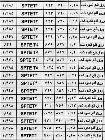 ورق قلع اندود درجه یک 0.18*800*940 T5 4500 kg 0.19*800*942 T5 4200 kg 0.22*804*520 T3 4300 kg 0.22*858*526 T3 1500 kg 0.22*876*827 ...