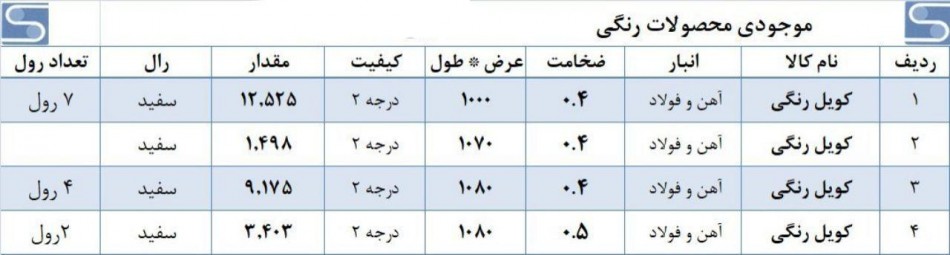صورت بار ورق گالوانیزه و رنگی کد : 22739