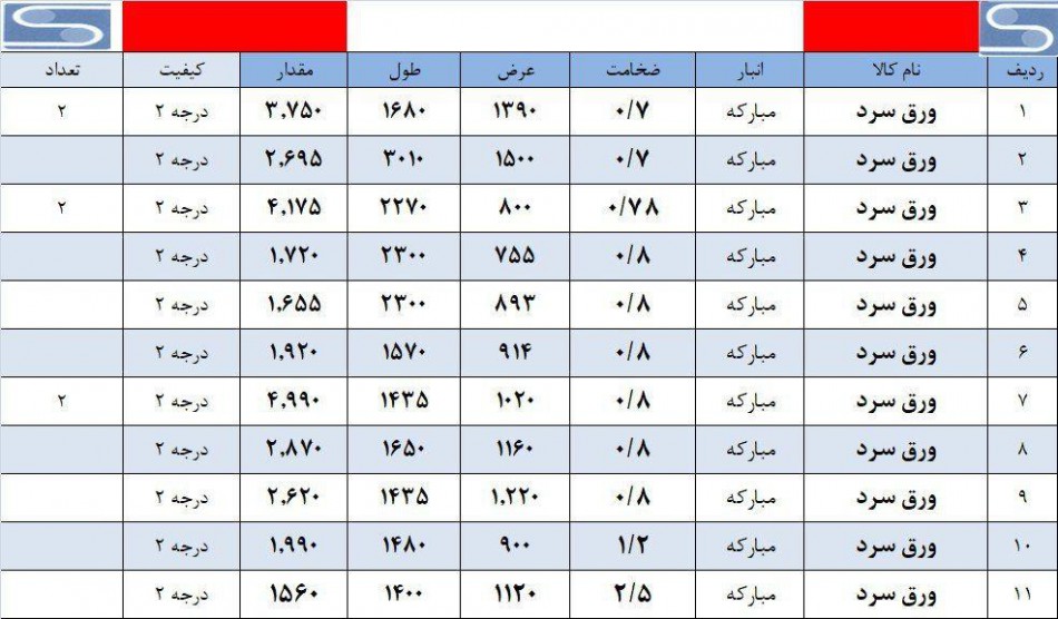 ورق سرددرجه 2 0.90*1210*14201020 0.90*915*18051100 0.70*1390*16801600 0.80*775*23002445 0.80*1250*25001700 0.88*1.80*14531250 0.88*1080*14532620 0.90*840*18302 ...
