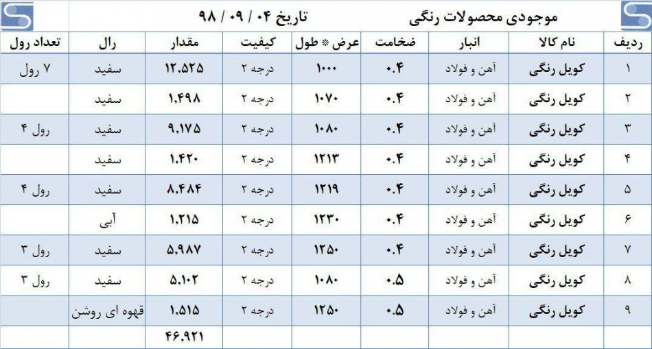 فولاد اشراق (سميع) کویل سرد فولادغرب 0.58*1250 0.60*1000 0.60*1250 0.70*1000. st12 02432385020