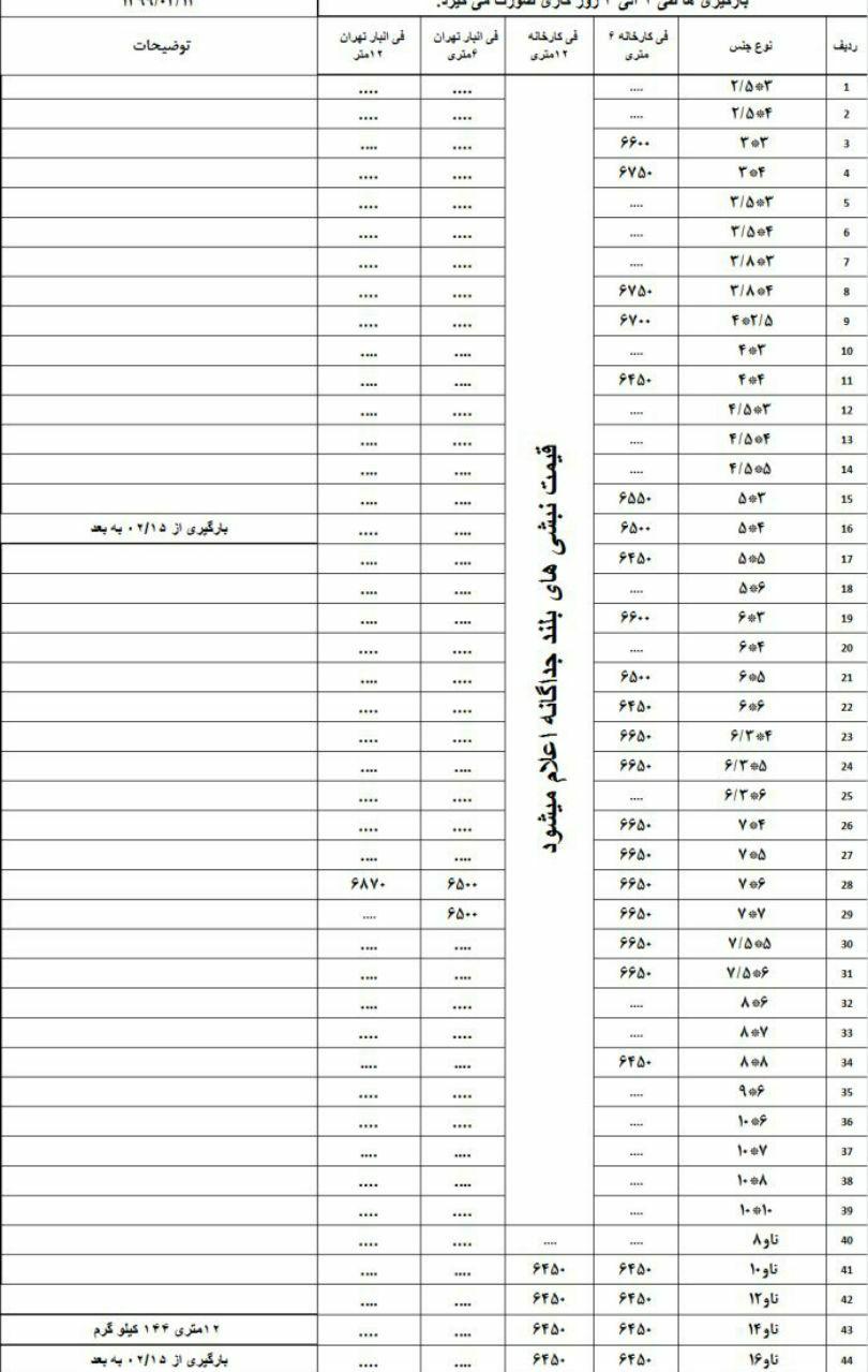 فولاد آناهیتا : ثابت میلگرد ۸ ۶۵۰۰ میلگرد ۱۰ ۶۴۰۰ میلگرد ۱۲ الی ۳۲ ۶۳۰۰