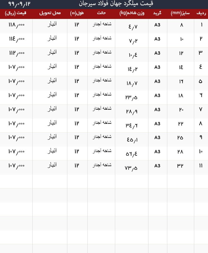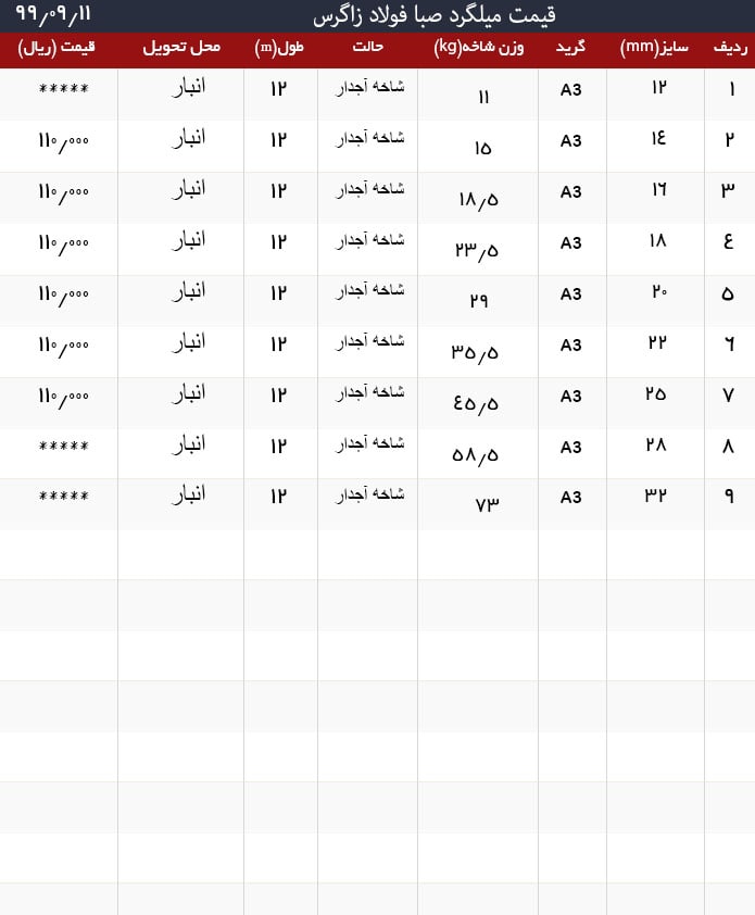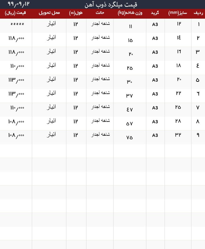 تیر 14: 14100 تیر16: 13300 تیر18: 13200 ذوب آهن 03191009559 09136355004