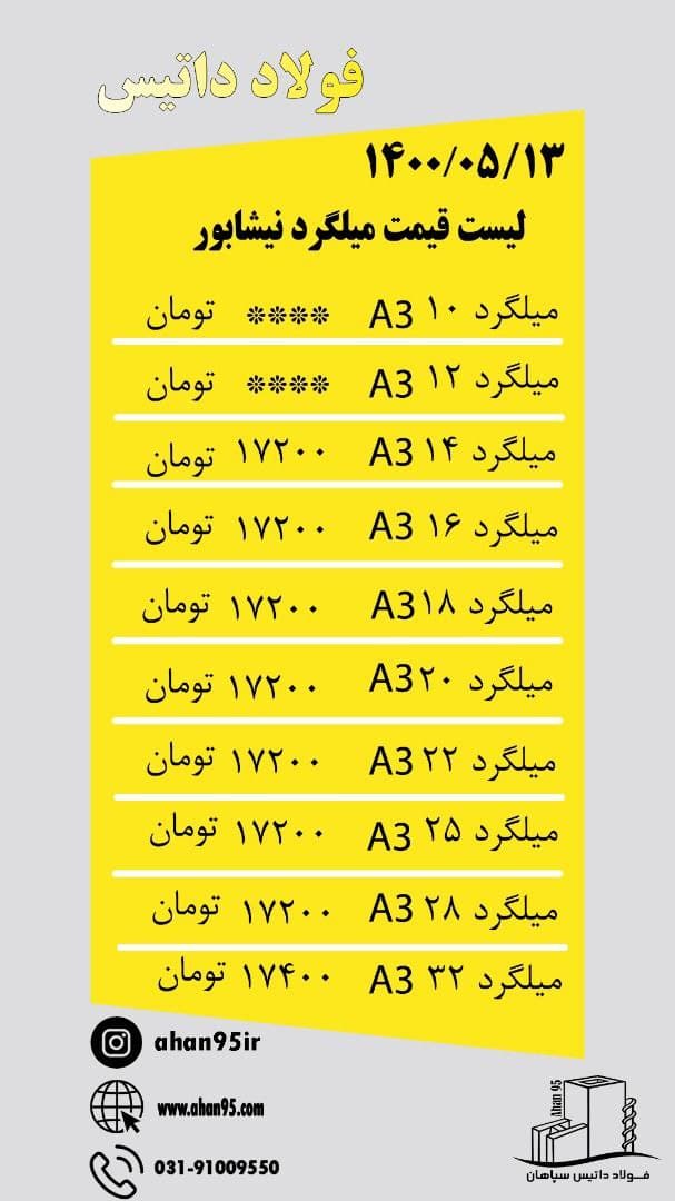 📆سه شنبه 1400/05/19 #میلگرد_نیشابور 📈 50 تومان افزایش قیمت ❗️بارگیری از کارخانه ❗️ ☎️ 031-91009550 ☎️ 09136355004 داخلی 200 و 201