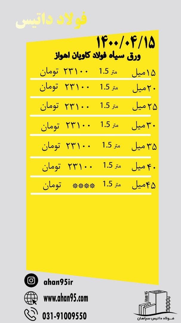 [ Photo ] 📅پنج شنبه 1400/04/17 #ورق 📛موجودی ورق 📛 ❗️بارگیری از انبار تهران ❗️ برای مشاهده محصولات کلیک کنید ↪️ https://t.me/ahan95ir ↩️ ↪️ www.ahan9 ...