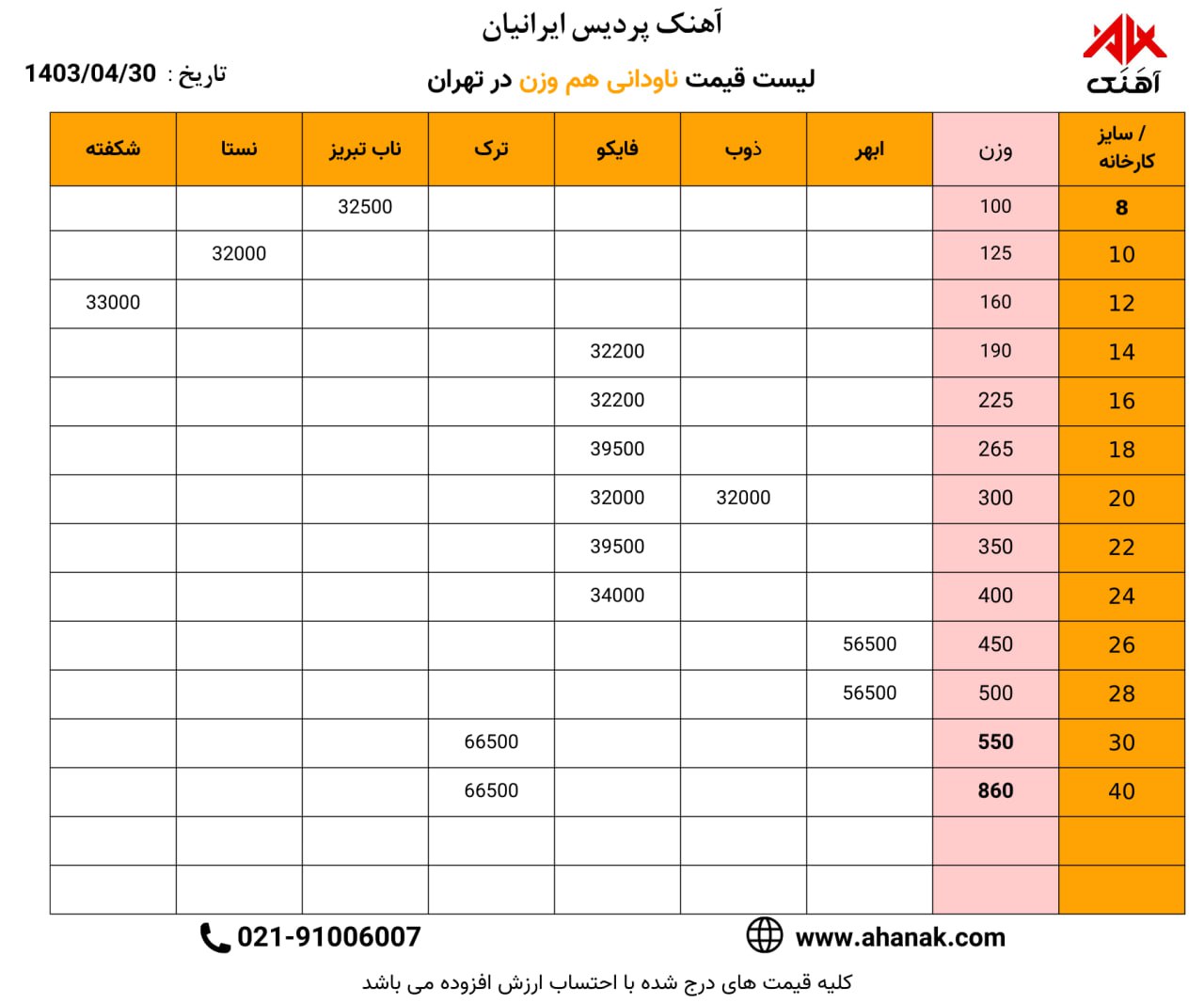 ⏱تاریخ :28 مرداد 1403 🔵 قیمت ورق روغنی 🔵 🏭 محل بارگیری تهران 📞 021-91006007 🌐 www.ahanak.com 🆔https://t.me/ahanak