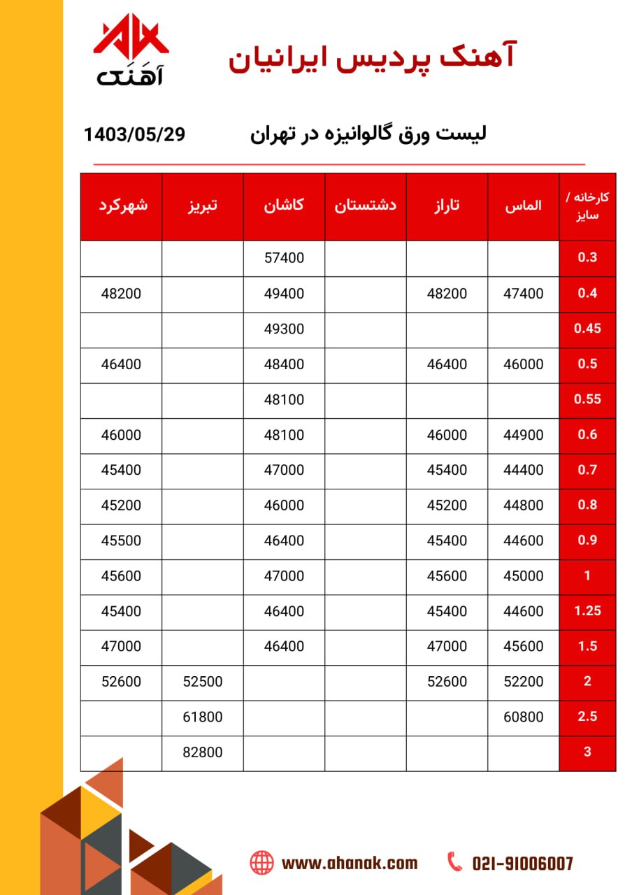 اعلام موجودی ورق گالوانیزه