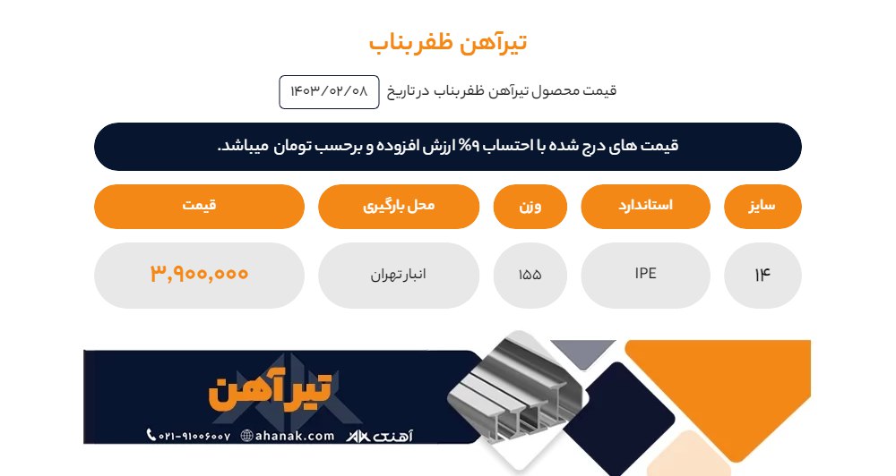 🔸 آهنک پردیس ایرانیان 🔸 ❗ لیست قیمت تیرآهن ظفر بناب #قیمت_تیرآهن #تیرآهن_ظفر_بناب ارتباط با مشاوران خرید 👇 ℹ️ (داخلی 160) ...