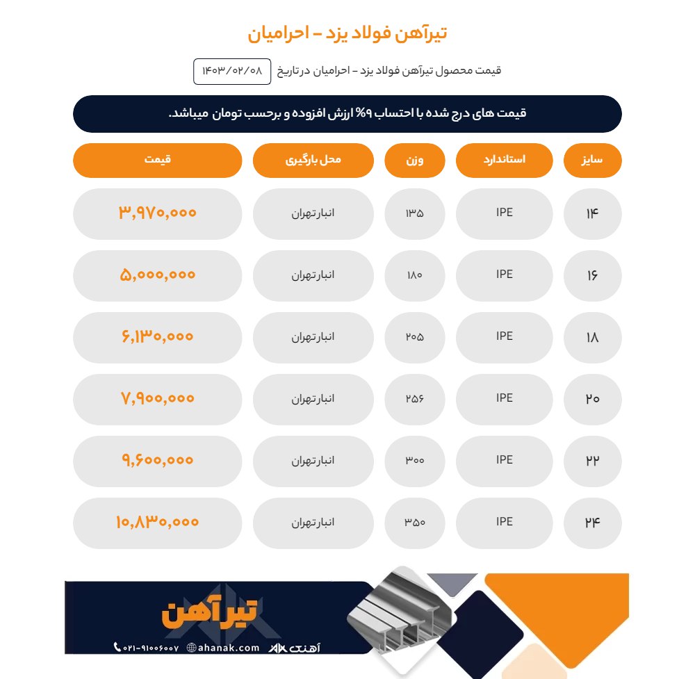 🔸 آهنک پردیس ایرانیان 🔸 ❗ لیست قیمت تیرآهن فولاد یزد - احرامیان #قیمت_تیرآهن #تیرآهن_فولاد_یزد_-_احرامیان ارتباط با مشاوران خرید 👇 ...