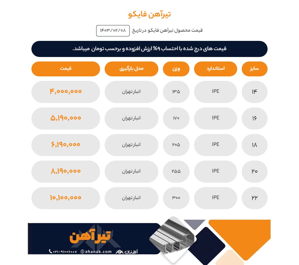 🔸 آهنک پردیس ایرانیان 🔸 ❗ لیست قیمت تیرآهن فایکو #قیمت_تیرآهن #تیرآهن_فایکو ارتباط با مشاوران خرید 👇 ℹ️ (داخلی 160) ...
