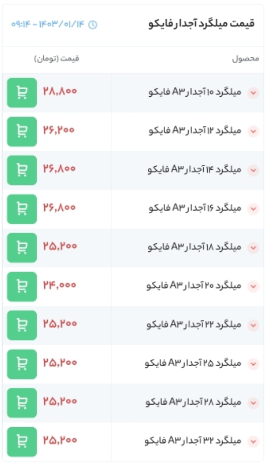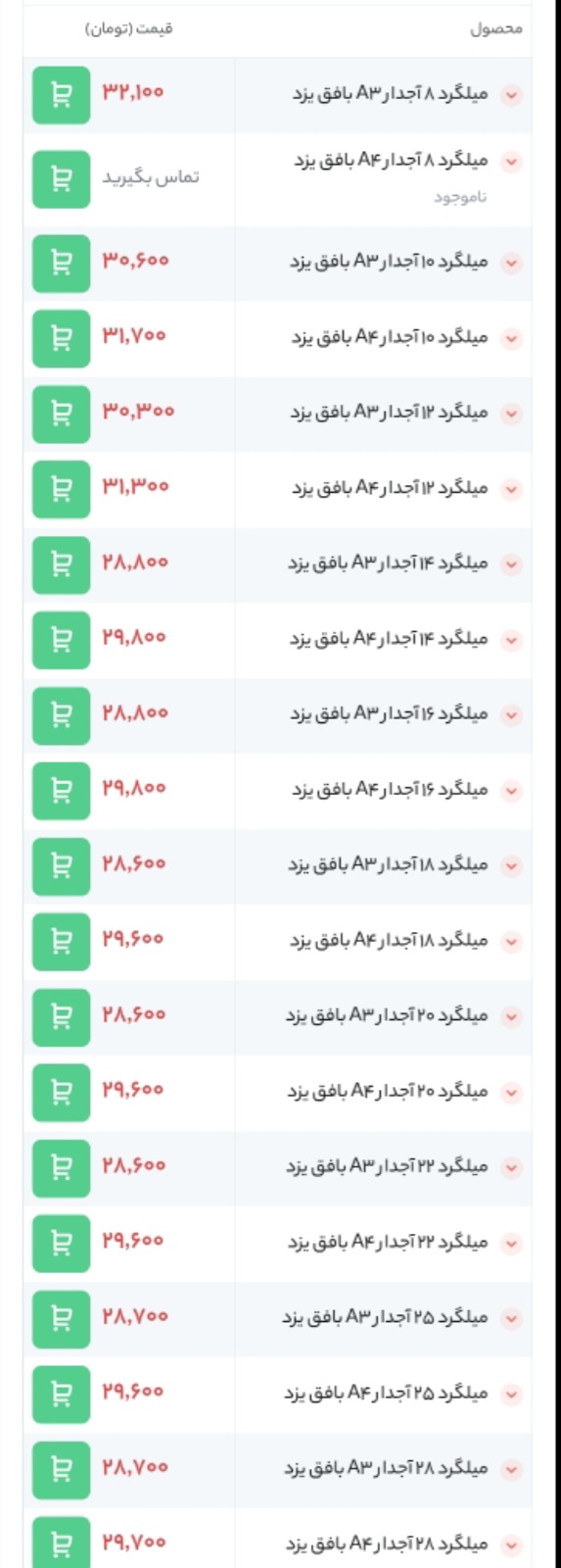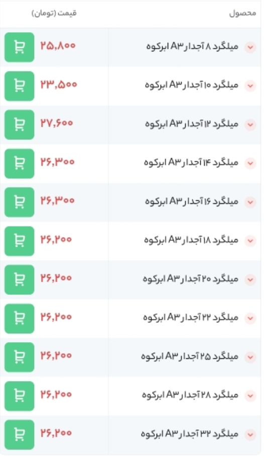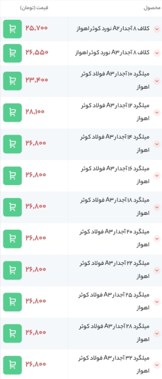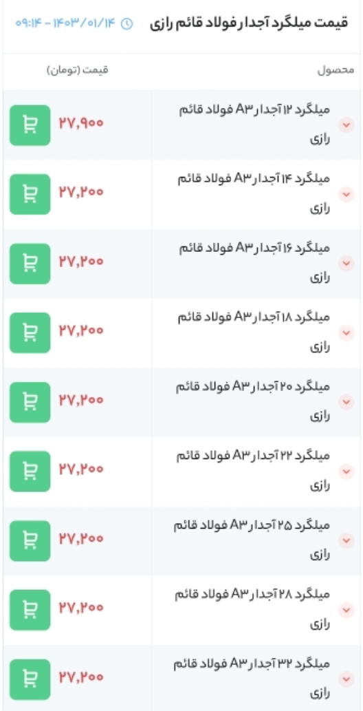 ⏱تاریخ : 26 فروردین 1403 🔵 قیمت میلگرد آجدار صنعت تجارت پردیس آذربایجان 🔵 🏭 محل بارگیری : کارخانه ▪️12 | A3 | ==> 28,300 ▪️14 | A3 | ==> 27,600 ▪️16 | A3 | ...