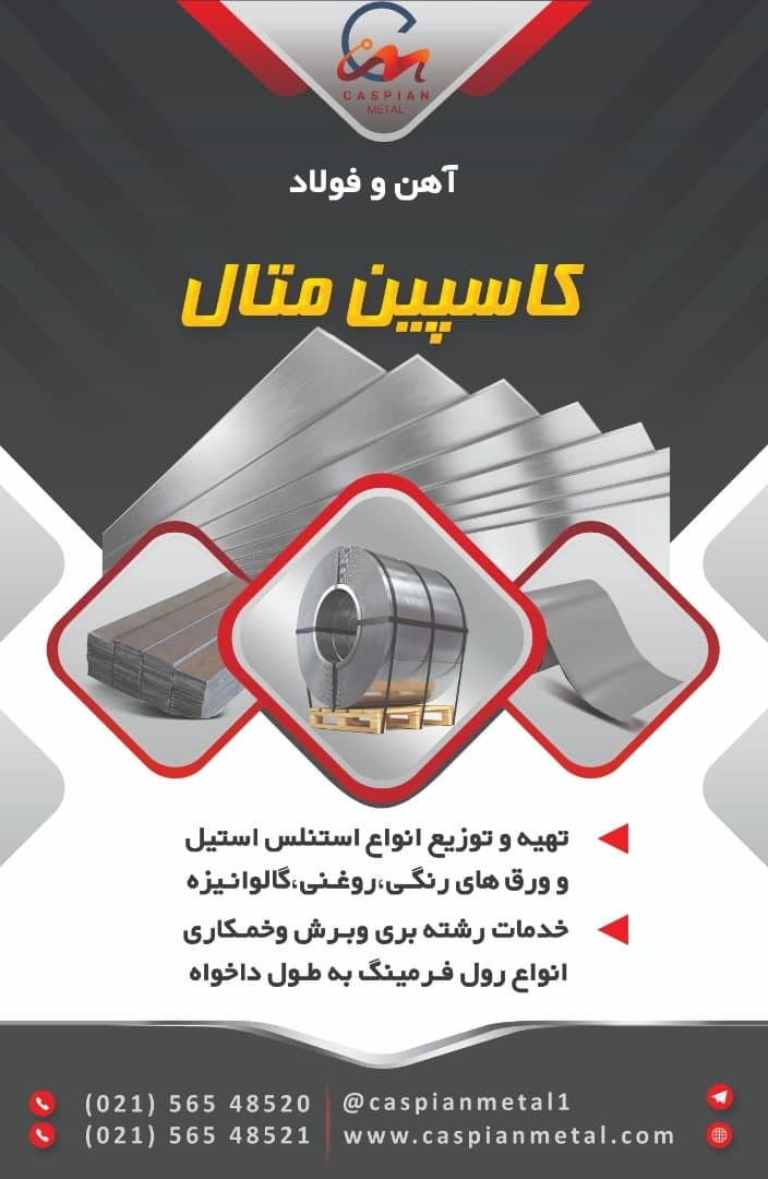 #كاسپین_متال تهیه و توزیع انواع استنلس استیل و ورق های رنگی،روغنی،گالوانیزه ارائه خدمات رشته بری وبرش وخمکاری انواع رول فرمینگ به طول دلخواه 🌐https://t.me/c ...
