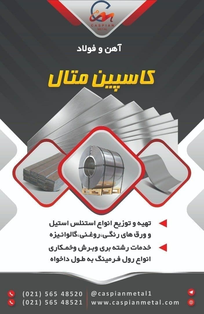 #کاسپین_متال ⚜️تهیه و توزیع انواع استنلس استیل و ورق های رنگی،روغنی،گالوانیزه ⚜️ارائه خدمات رشته بری وبرش وخمکاری انواع رول فرمینگ به طول دلخواه 🌐https://t. ...