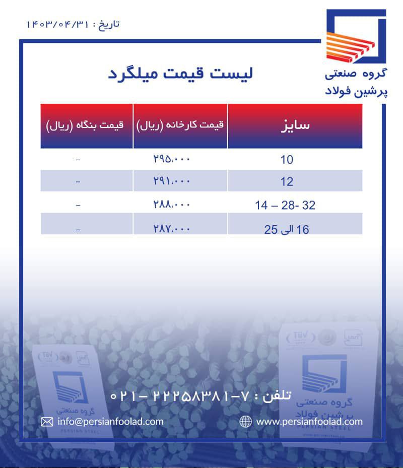 جهت مشاهده قیمت محصولات کلیک کنید.درخواستهای خرید گروه صنعتی پرشین فولاد