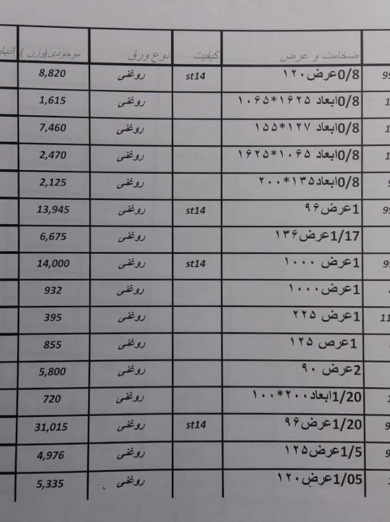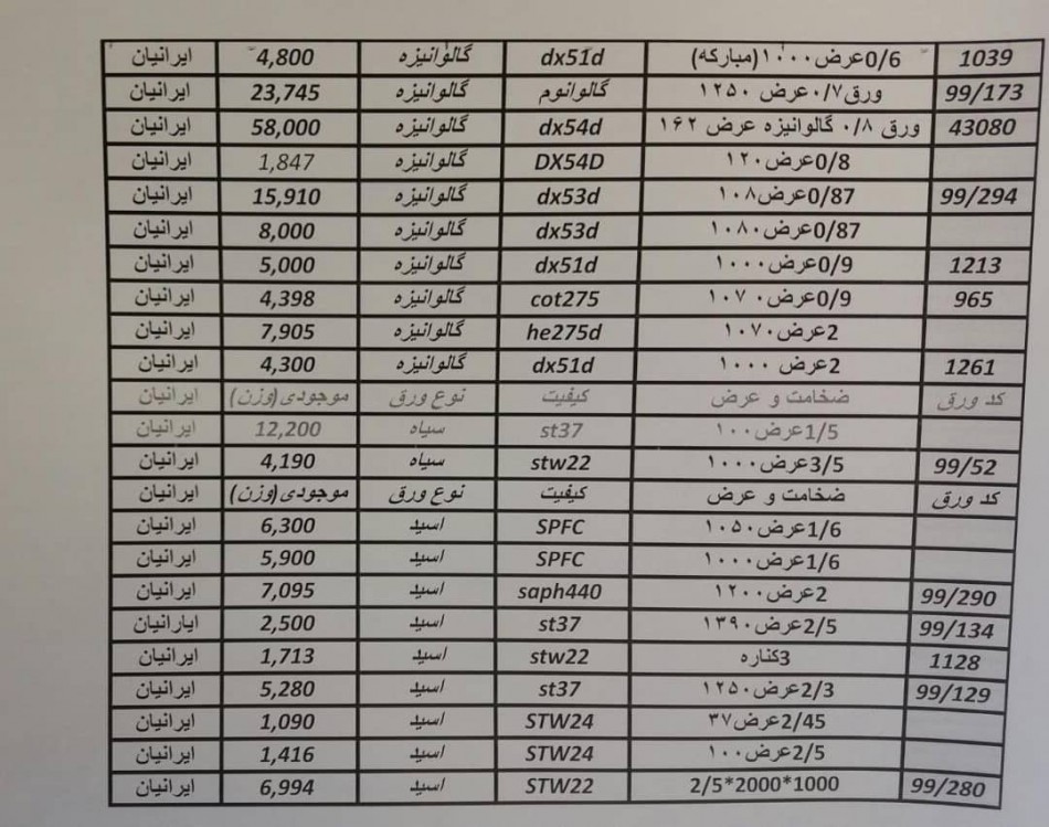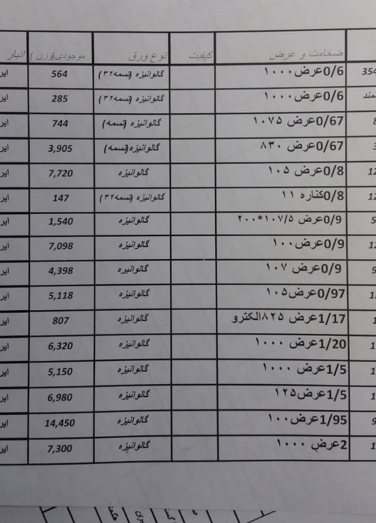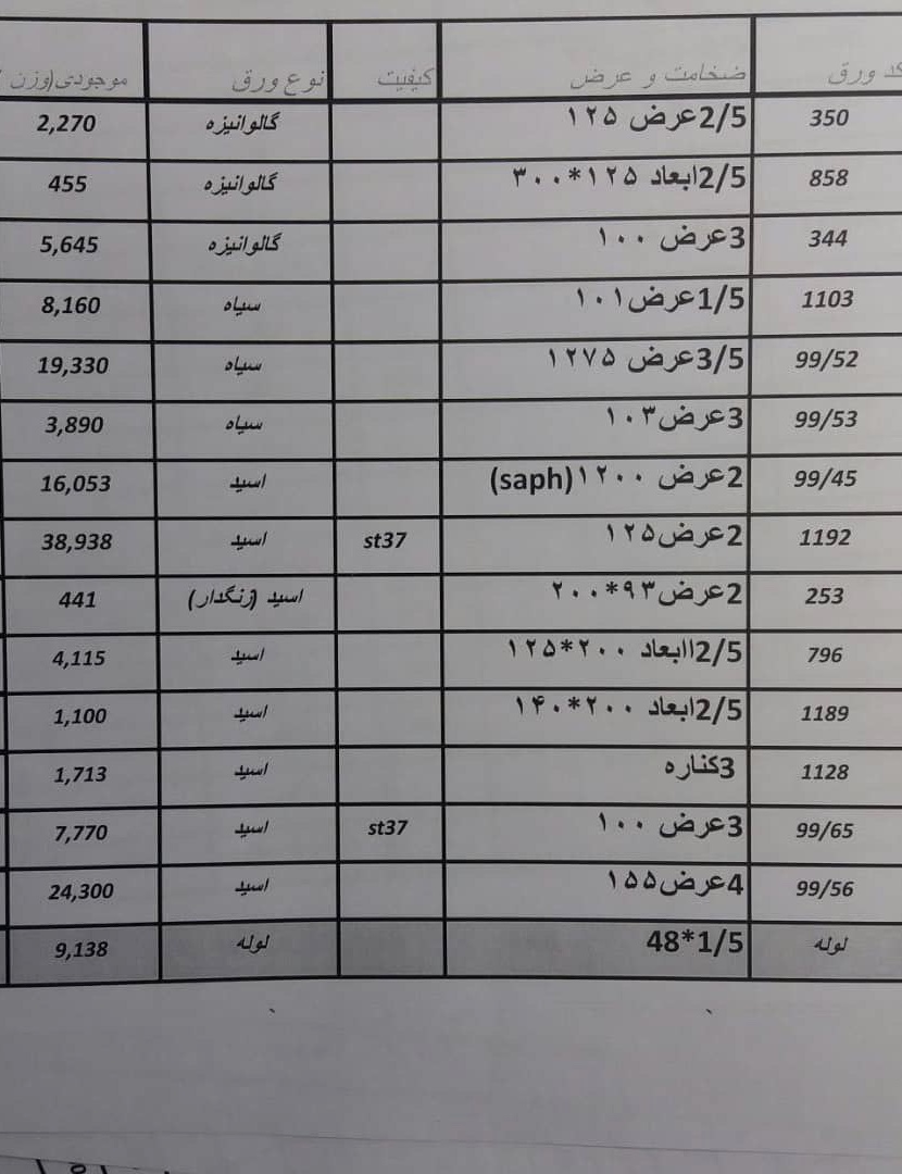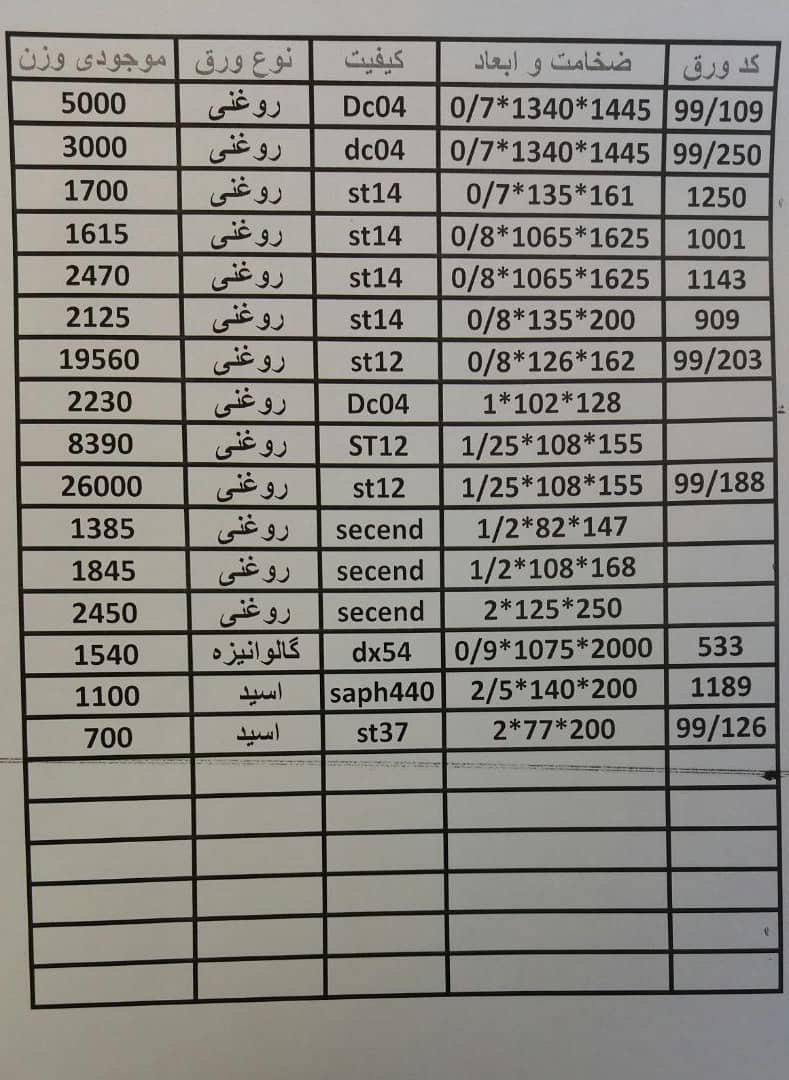 ورق روغنی ۲.۵ عرض ۱۰۰۰ و ۳ عرض ۱۰۰۰ ظرفیت موجود میباشد مبارکه st14 09121393766 افشاری