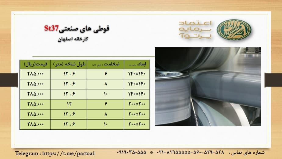 [Forwarded from اعتماد سرمایه پرتوآ (اعتماد سرمایه پرتوآ)] فروش ویژه سر ورق 👇 👈 فروش سر و ته ورق - بارگیری از انبار اصفهان ضخامت ⬅️ 14.27 میلیمتر گرید ⬅️ ST ...