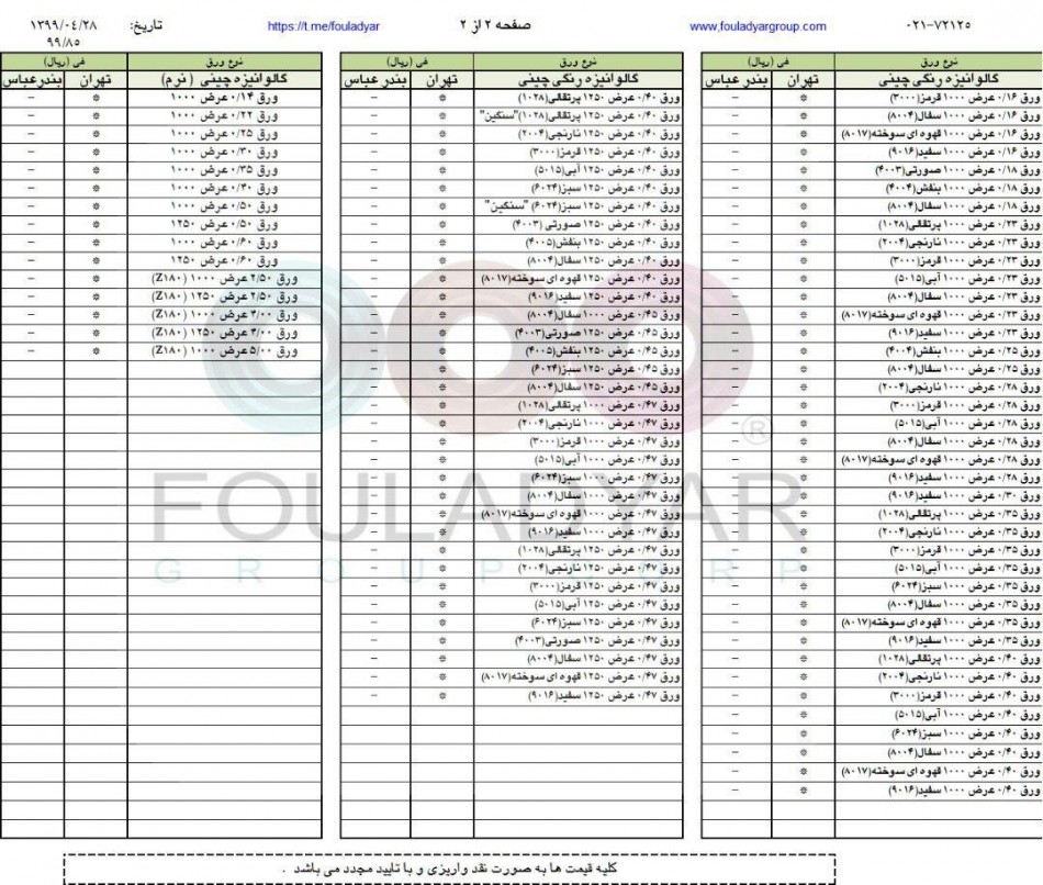 #گروه_شركتهاي_فولاديار بزرگترین عرضه کننده ورقهای سرد گالوانیزه و رنگی ۰۲۱۷۲۱۲۵ http://www.fouladyargroup.com/ https://t.me/fouladyar#گروه_شركتهاي_فولاديار ب ...