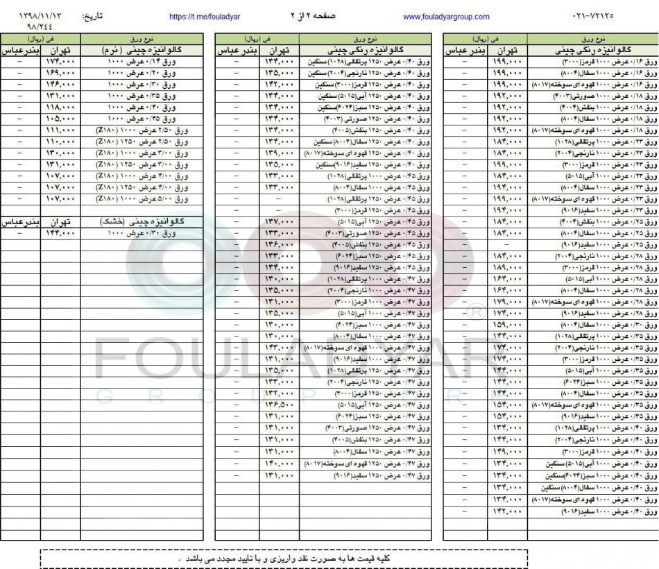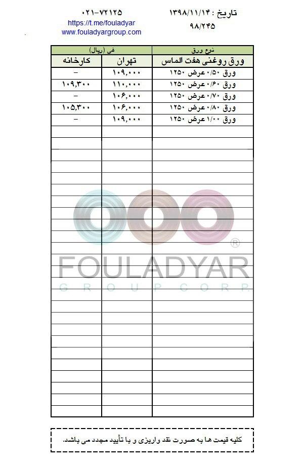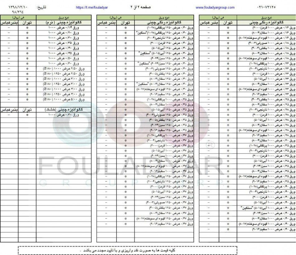 #گروه_شركتهاي_فولاديار بزرگترین عرضه کننده ورقهای سرد گالوانیزه و رنگی 02172125 http://www.fouladyargroup.com/ https://t.me/fouladyar