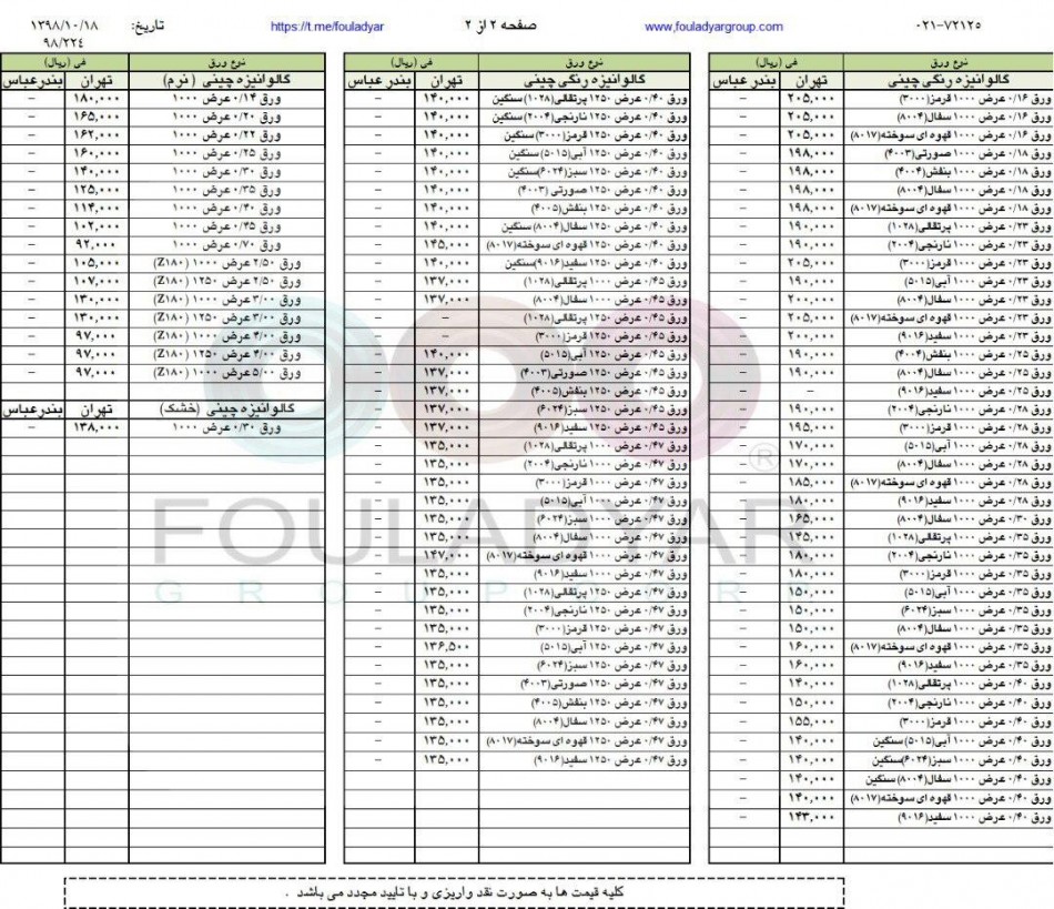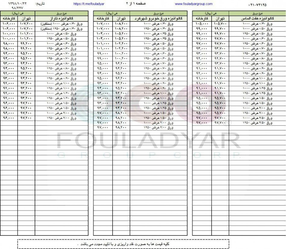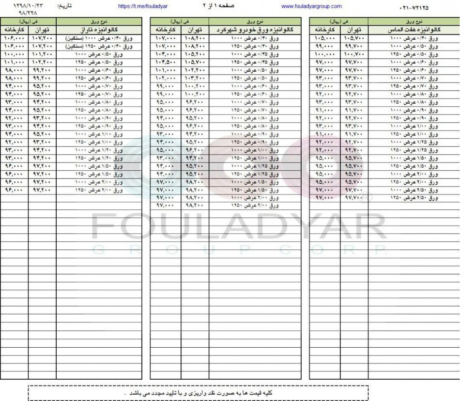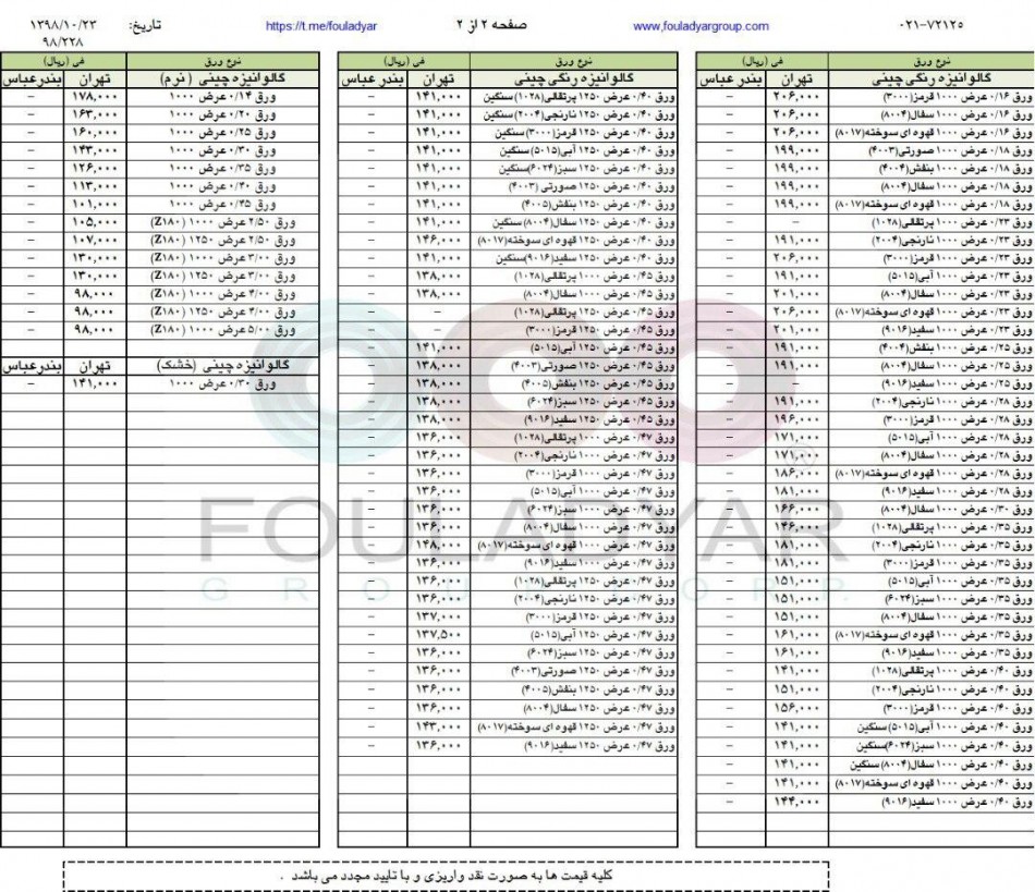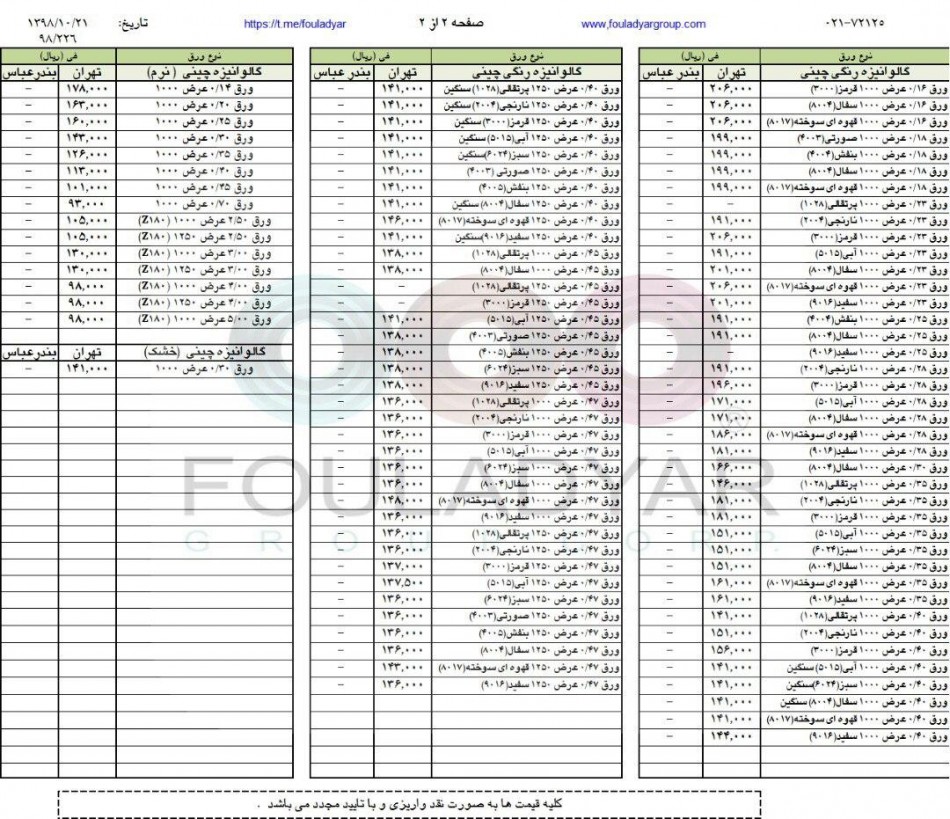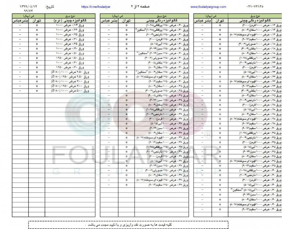 گروه شركتهاي فولاديار بزرگترین عرضه کننده ورقهای سردگالوانیزه ورنگی 02172125 http://www.fouladyargroup.com/ https://t.me/fouladyar