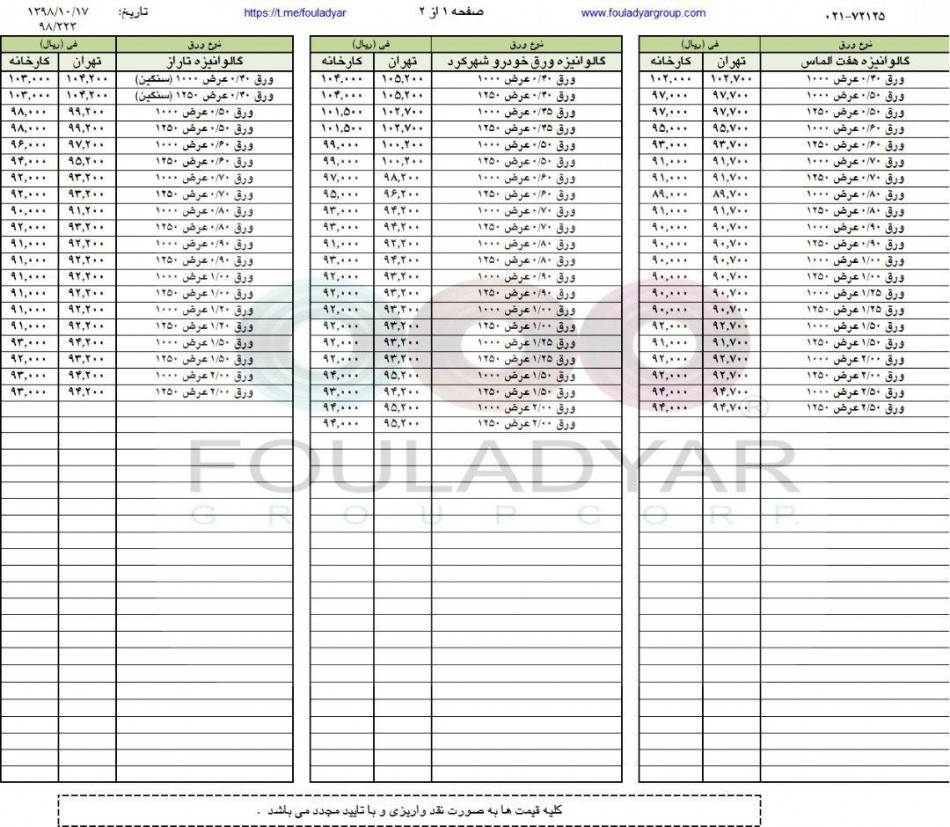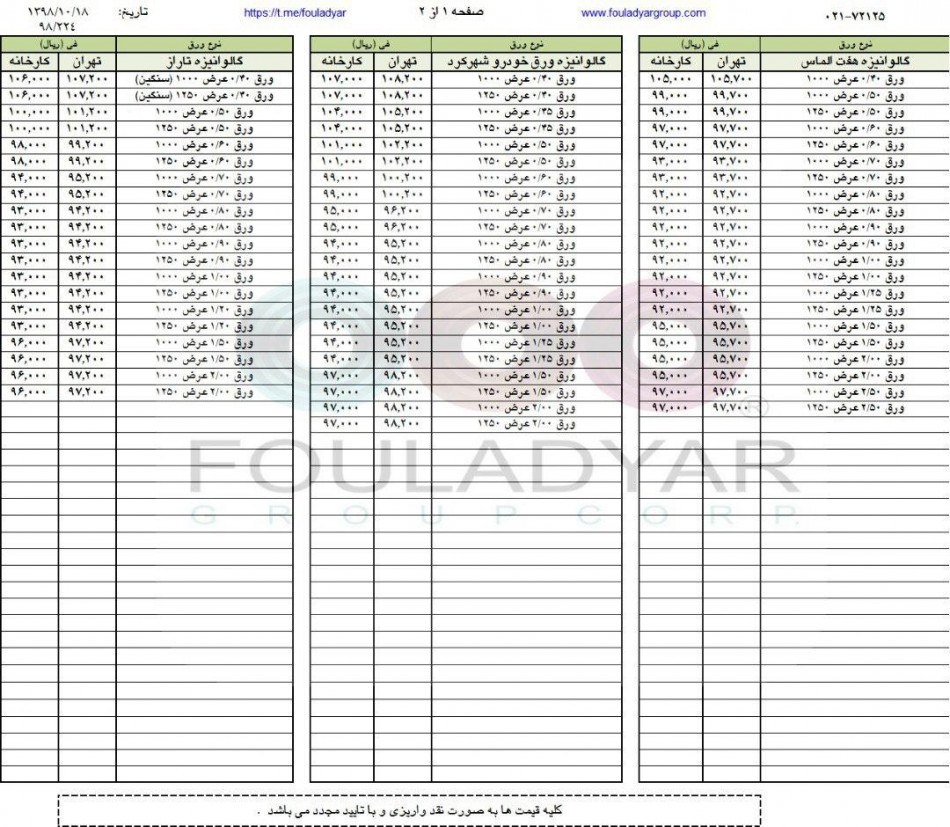 #گروه_شركتهاي_فولاديار بزرگترین عرضه کننده ورقهای سرد گالوانیزه و رنگی ۰۲۱۷۲۱۲۵ http://www.fouladyargroup.com/ https://t.me/fouladyar
