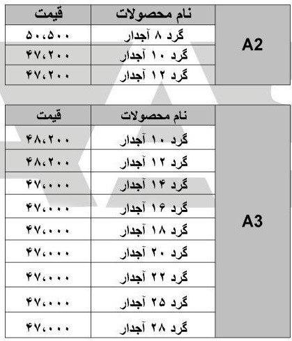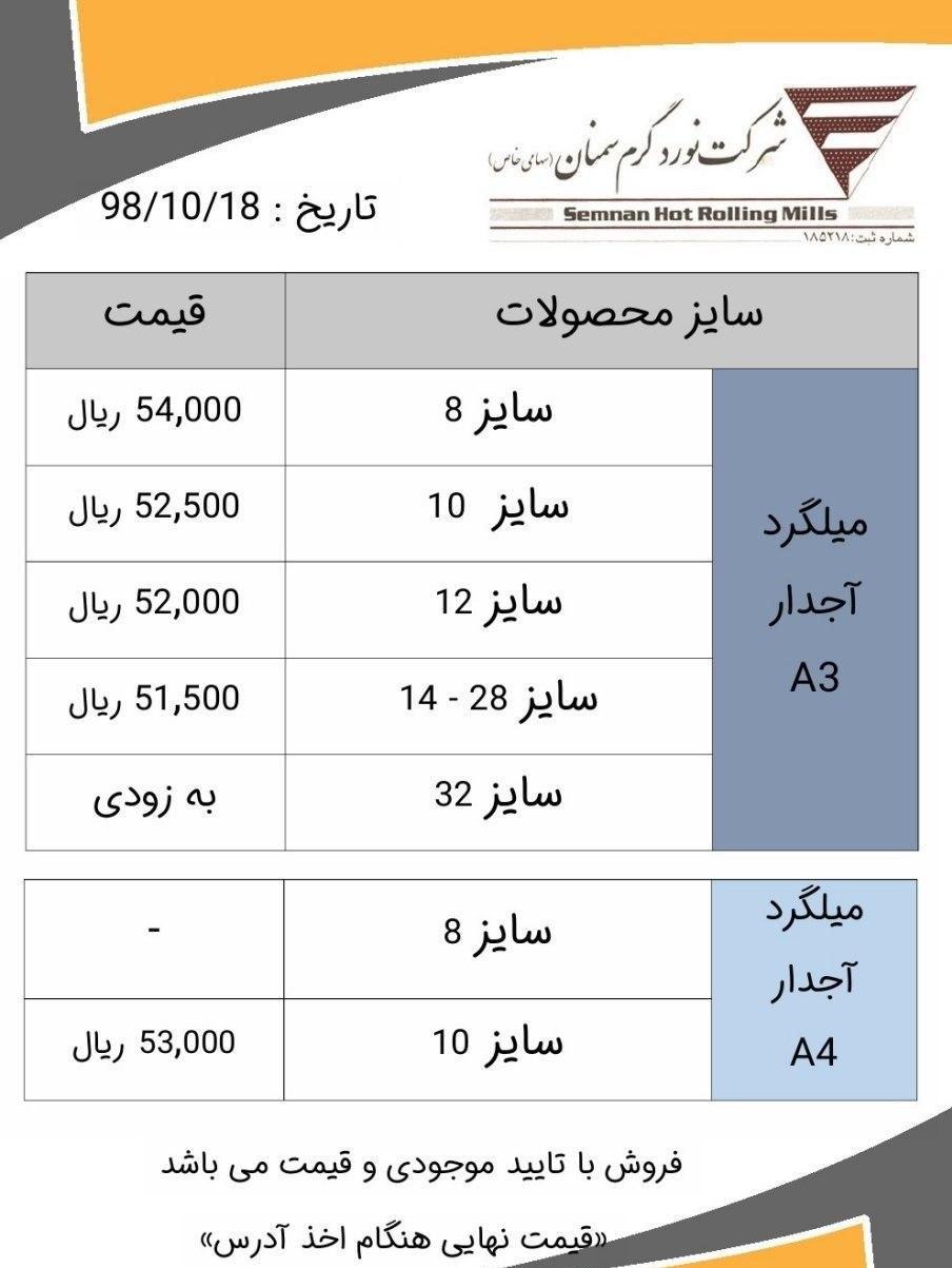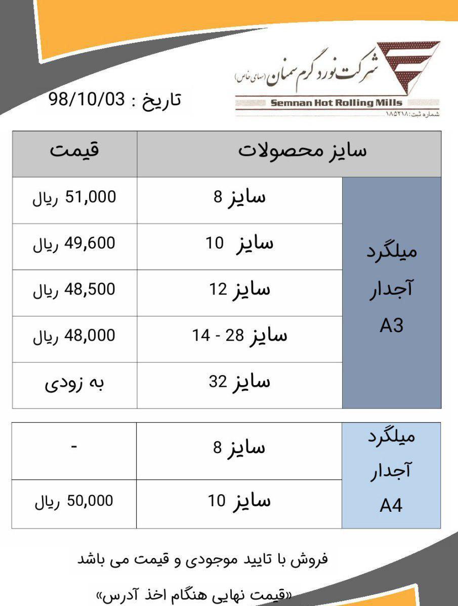 ميلگرد ١٠ ۴۸۵۰۰ A2 ميلگرد ١٢ ۴۸۵۰۰ A2 ميلگرد ١٤ ۴۸۰۰۰ A3 میلگرد ۱۶ ۴۸۰۰۰ A3 میلگرد ۱۸ ...