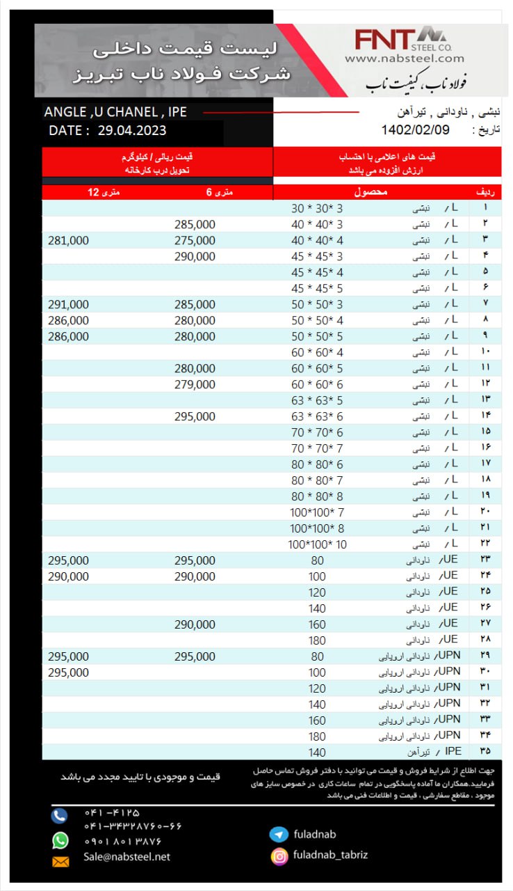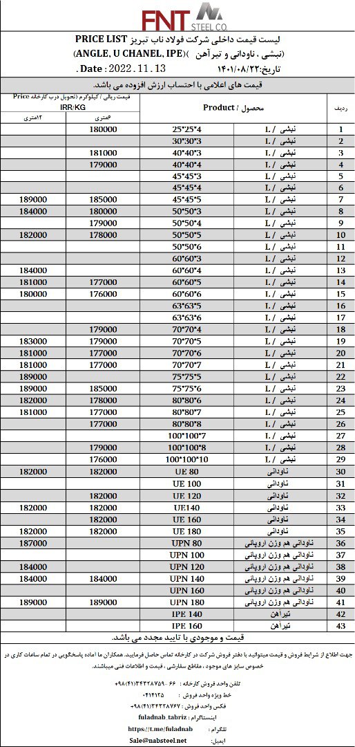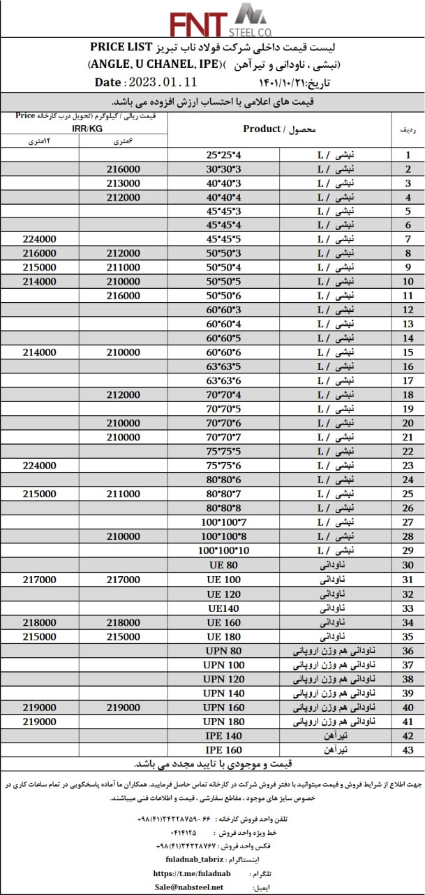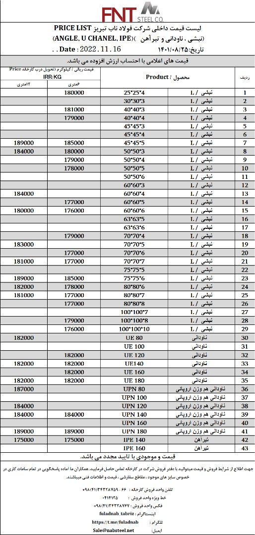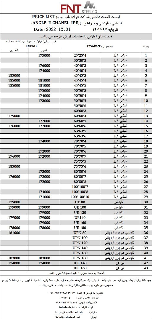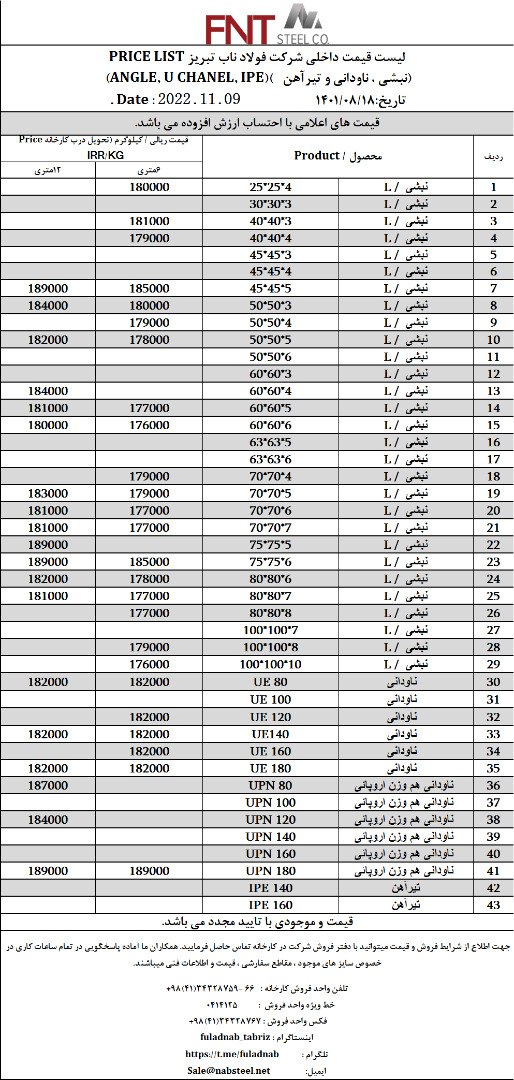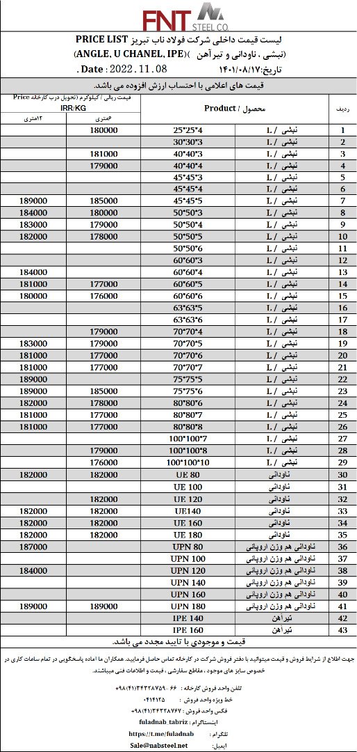 جهت مشاهده قیمت محصولات کلیک کنید.درخواستهای خرید فولاد ناب تبریز