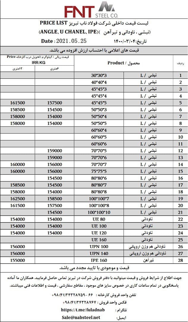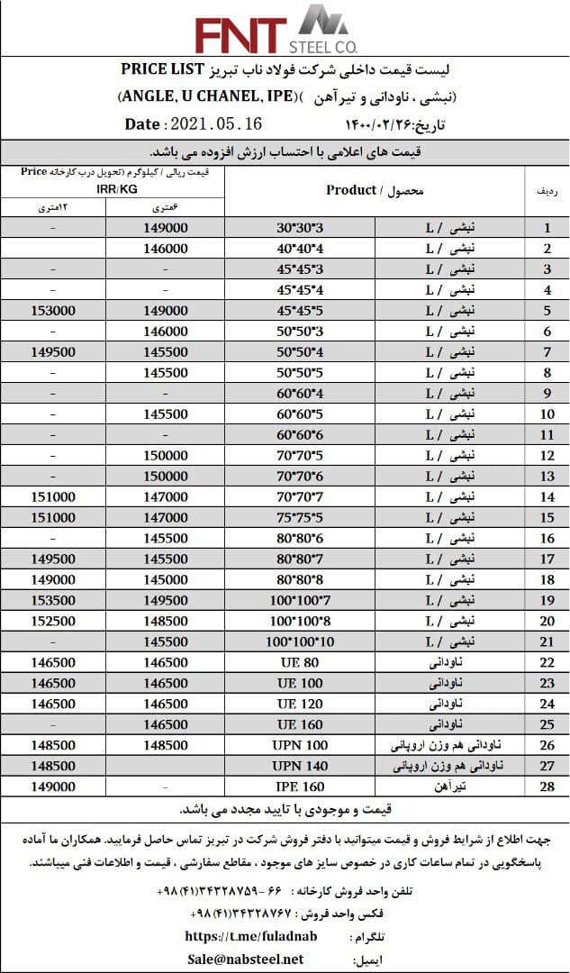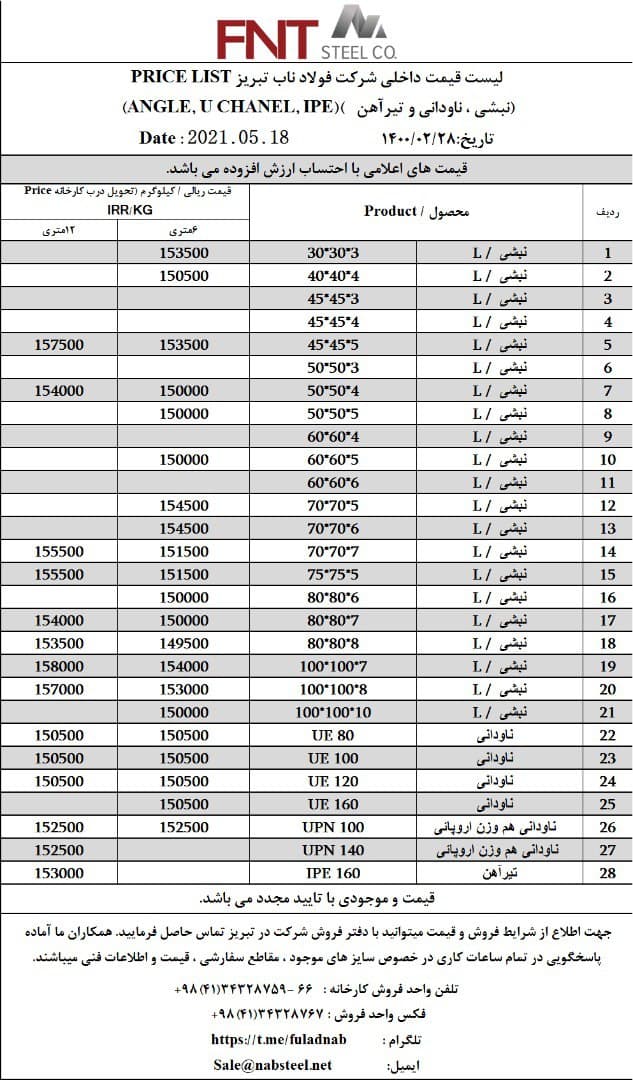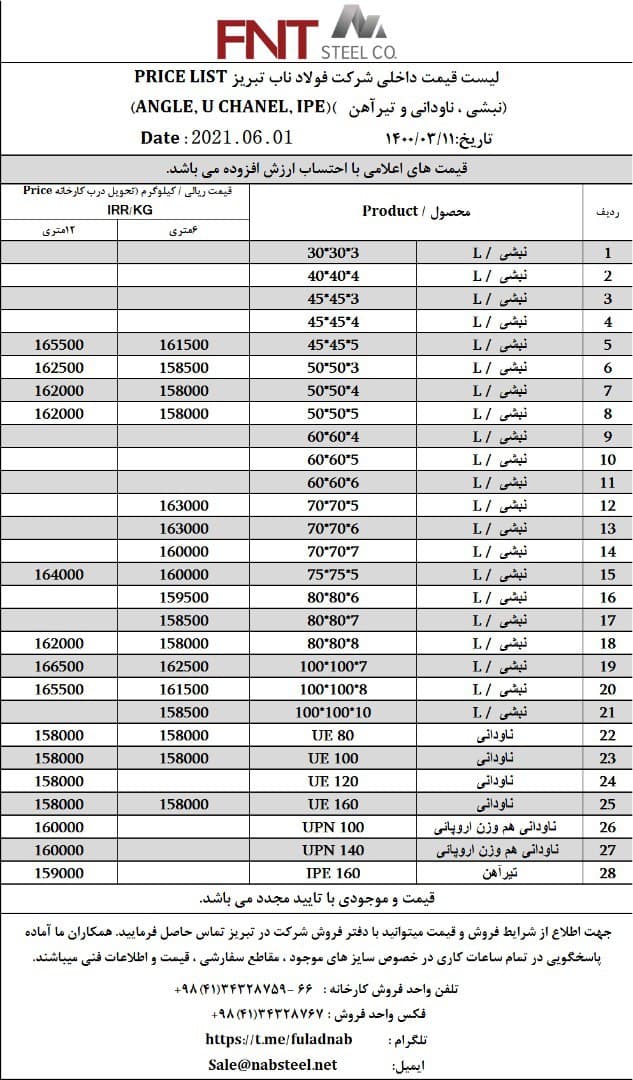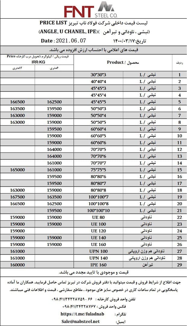 شرکت #فولاد_ناب_تبریز تولیدکننده انواع نبشی ناودانی و تیرآهن #فولاد_ناب_کیفیت_ناب ☎️۰۴۱۳۴۳۲۸۷۵۹-۶۶ 📱۰۹۰۱۸۰۱۳۸۷۶ 🌐www.nabsteel.com 🆔 @fuladnab https://foolad۲۴ ...