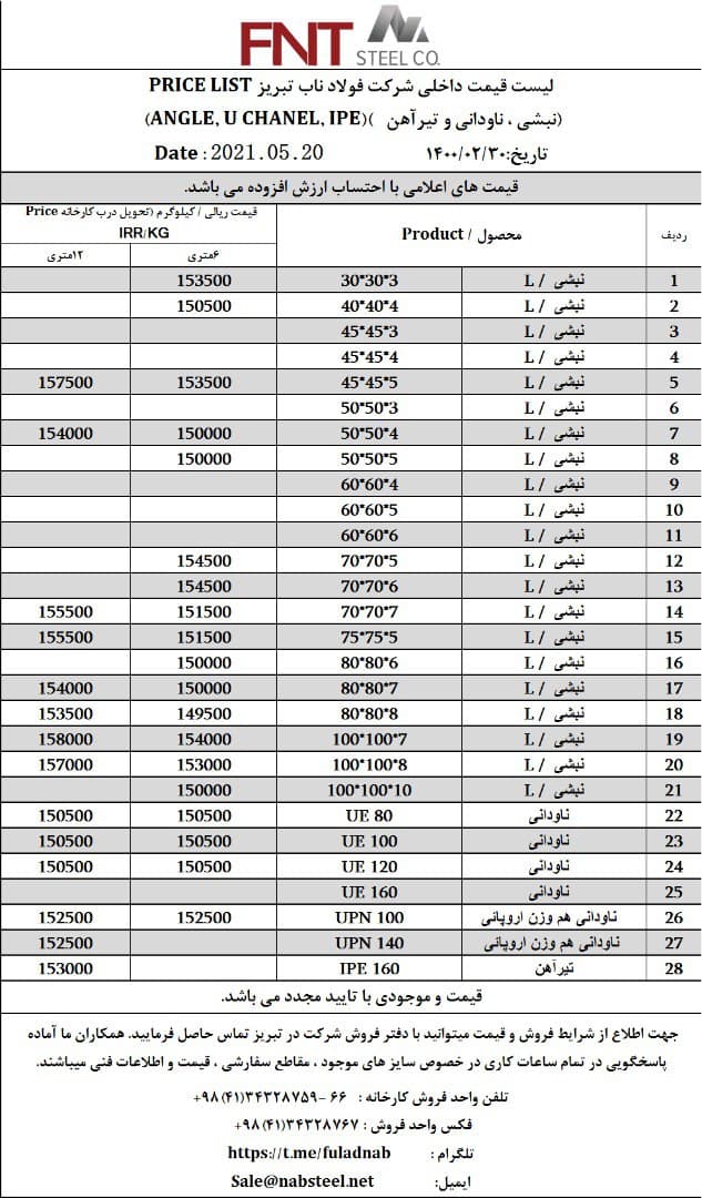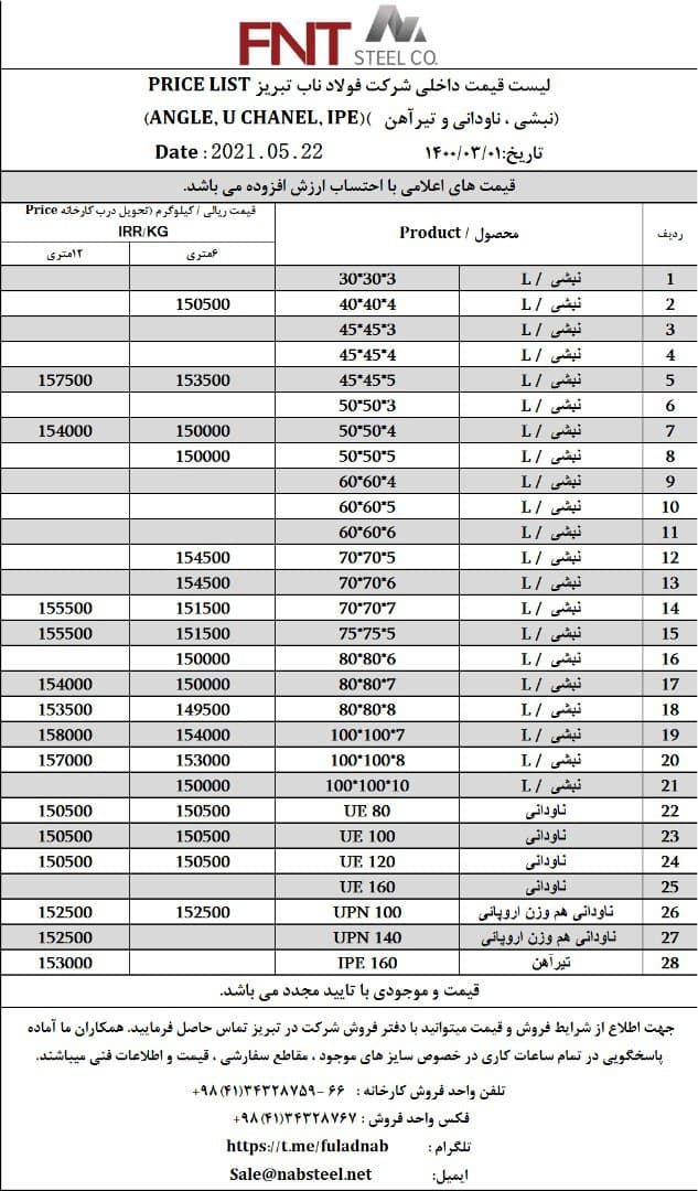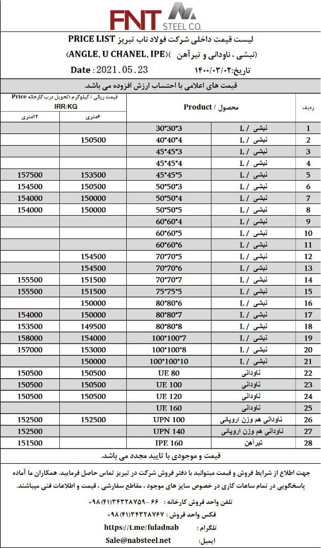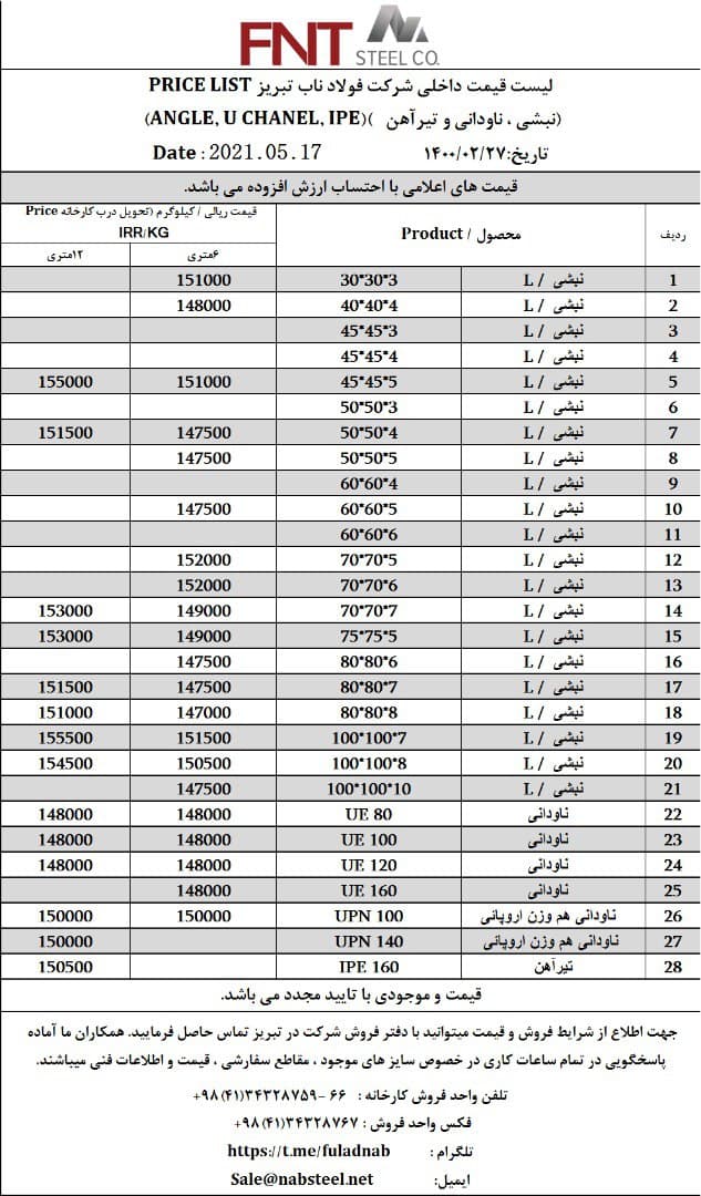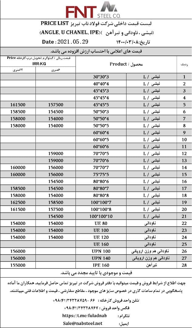 شرکت #فولاد_ناب_تبریز تولیدکننده انواع نبشی ناودانی و تیرآهن #فولاد_ناب_کیفیت_ناب ☎️۰۴۱۳۴۳۲۸۷۵۹-۶۶ 📱۰۹۰۱۸۰۱۳۸۷۶ 🌐www.nabsteel.com 🆔 @fuladnab https://foolad۲۴ ...