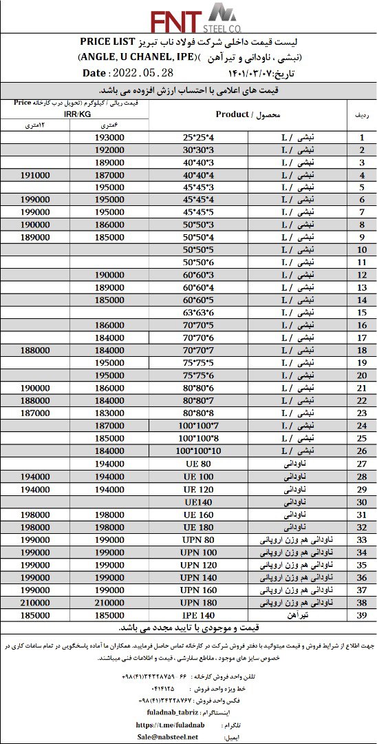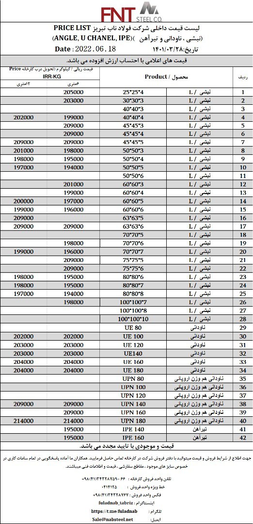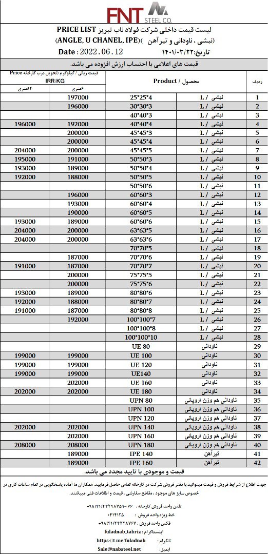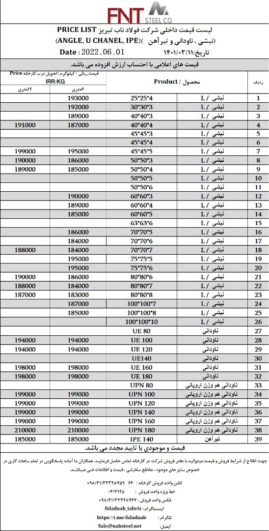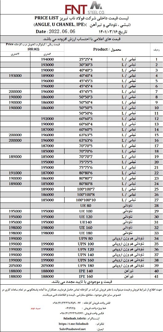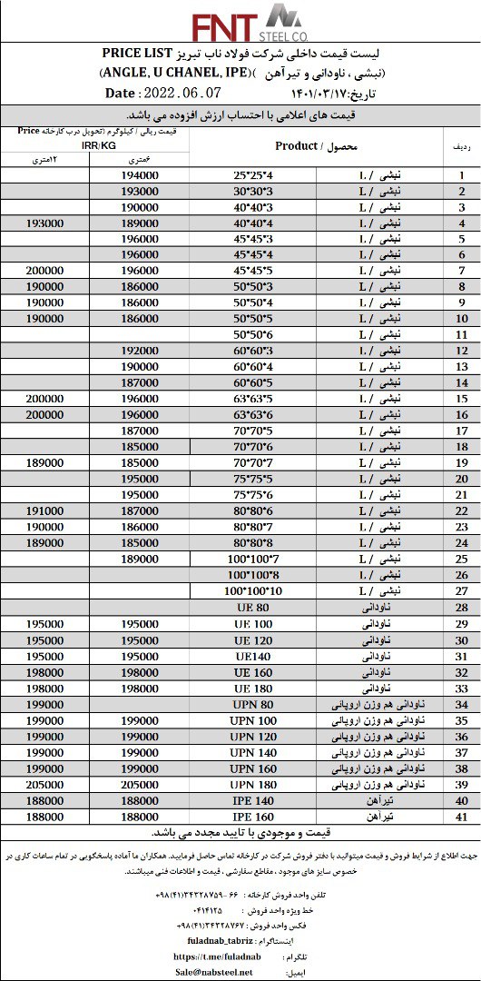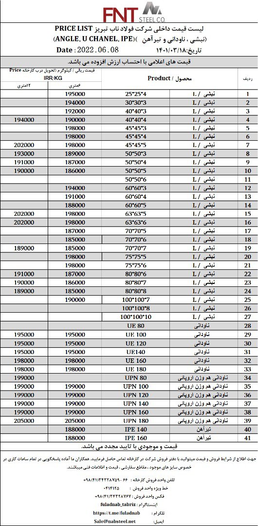 ✅شرکت #فولاد_ناب_تبریز تولیدکننده انواع نبشی ناودانی و تیرآهن #فولاد_ناب_کیفیت_ناب ☎️0414125 ☎️04134328759-66 📱09018013876 🌐www.nabsteel.com 🆔 @fuladnab https: ...
