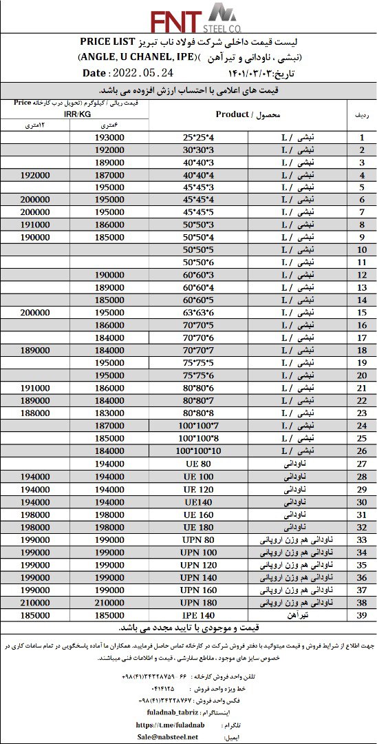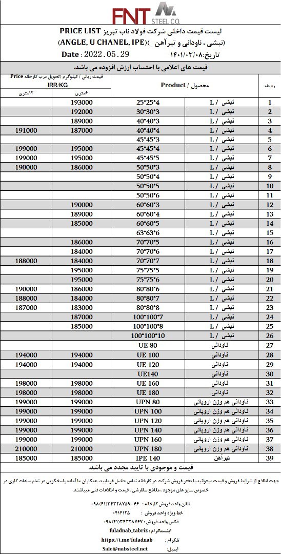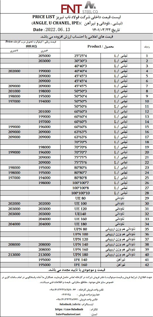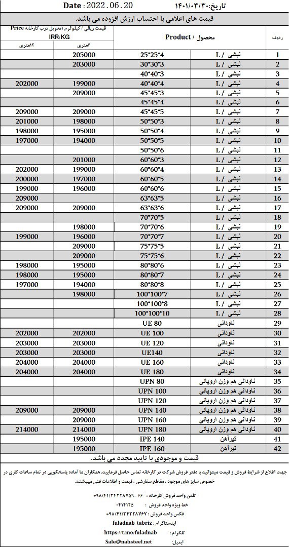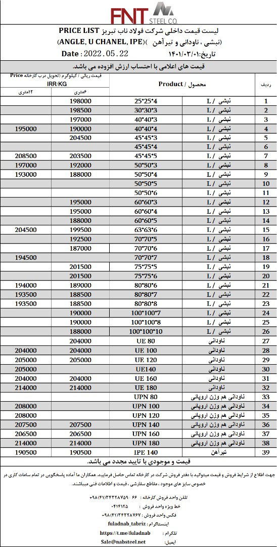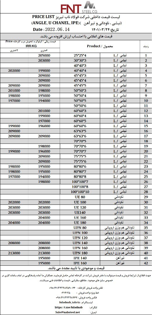 ✅شرکت #فولاد_ناب_تبریز تولیدکننده انواع نبشی ناودانی و تیرآهن #فولاد_ناب_کیفیت_ناب ☎️0414125 ☎️04134328759-66 📱09018013876 🌐www.nabsteel.com 🆔 @fuladnab https: ...