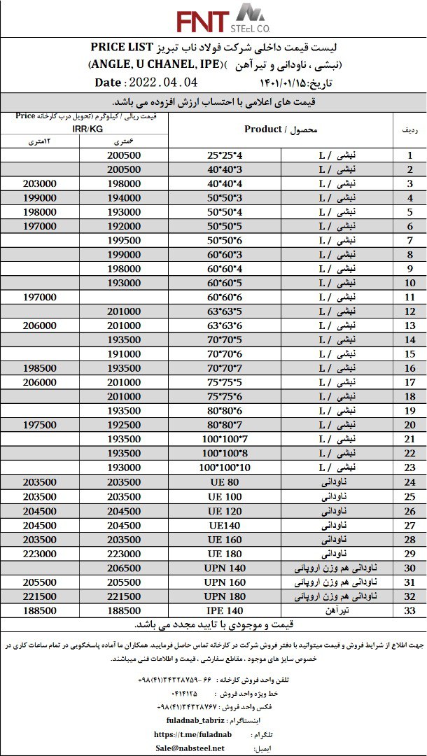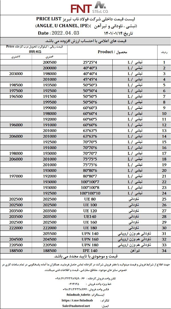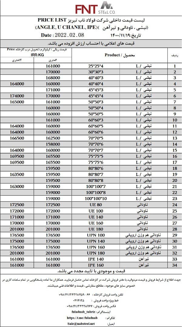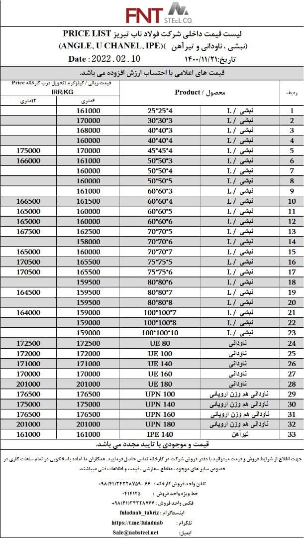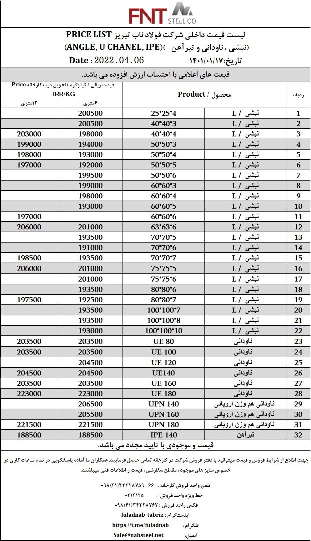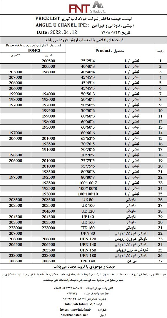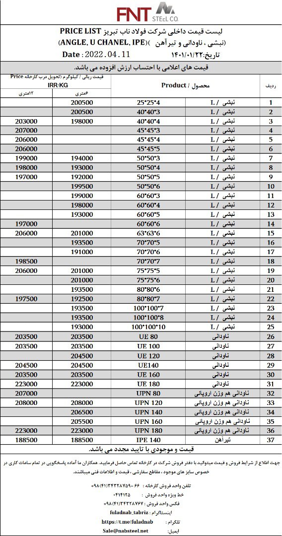 ✅شرکت #فولاد_ناب_تبریز تولیدکننده انواع نبشی ناودانی و تیرآهن #فولاد_ناب_کیفیت_ناب ☎️04134328759-66 📱09018013876 🌐www.nabsteel.com 🆔 @fuladnab https://foolad2 ...