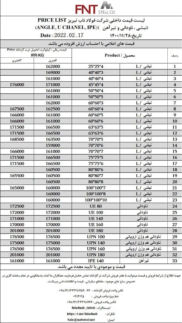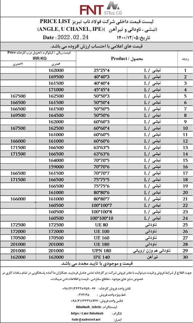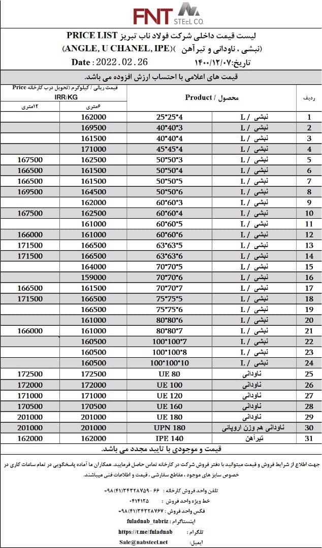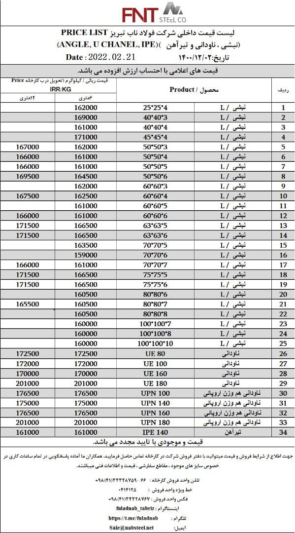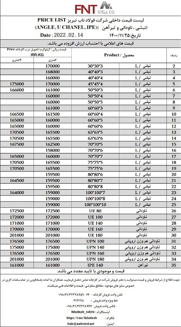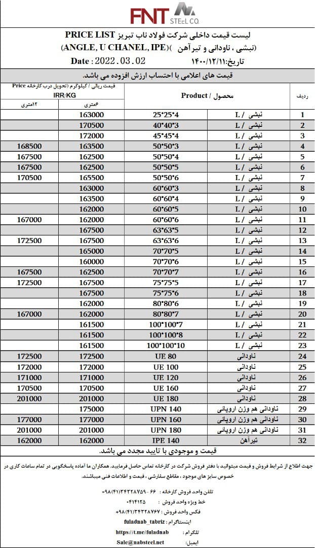 ✅شرکت #فولاد_ناب_تبریز تولیدکننده انواع نبشی ناودانی و تیرآهن #فولاد_ناب_کیفیت_ناب ☎️04134328759-66 📱09018013876 🌐www.nabsteel.com 🆔 @fuladnab https://foolad2 ...