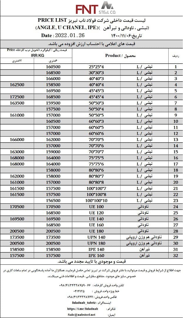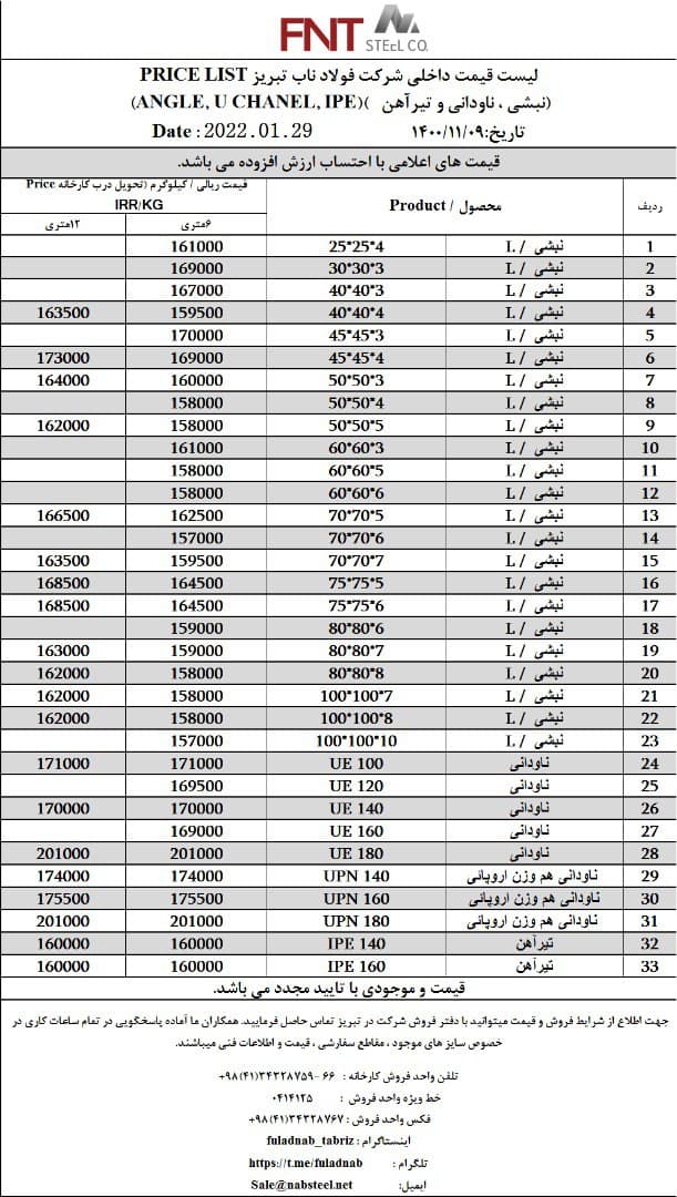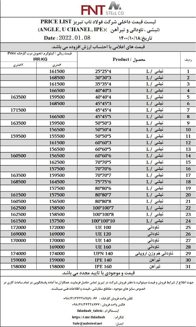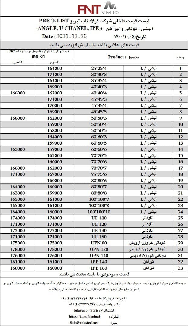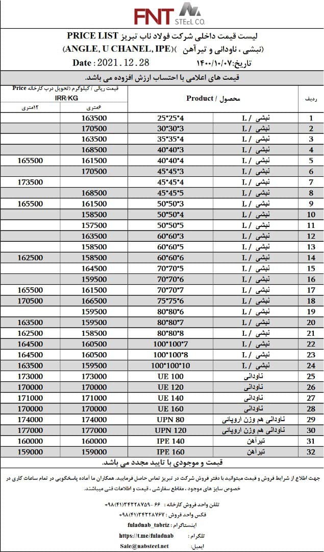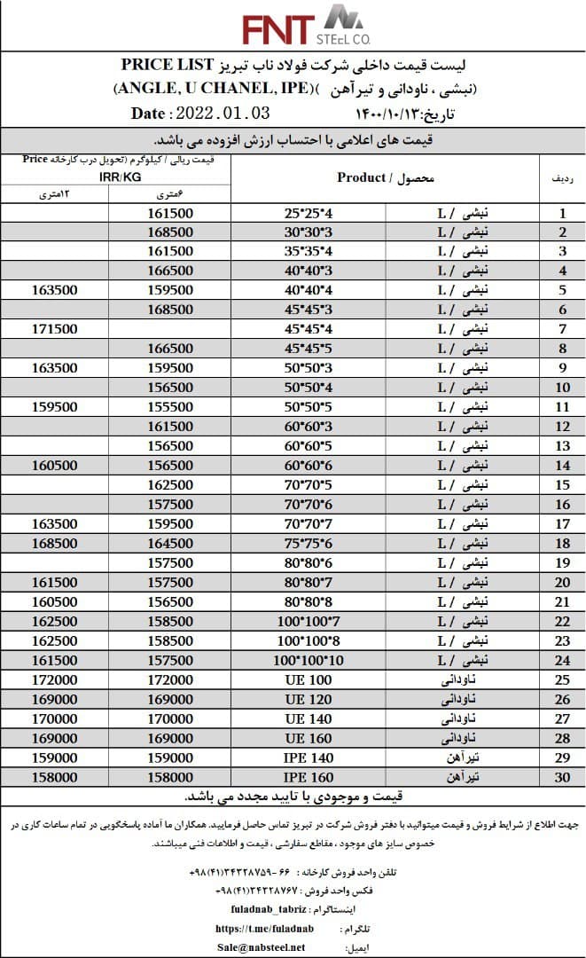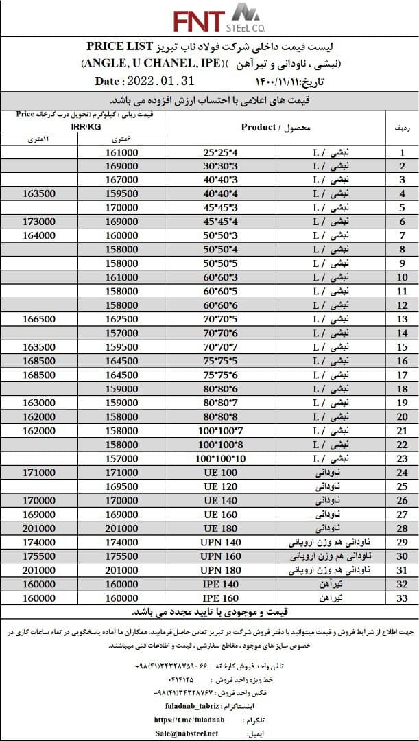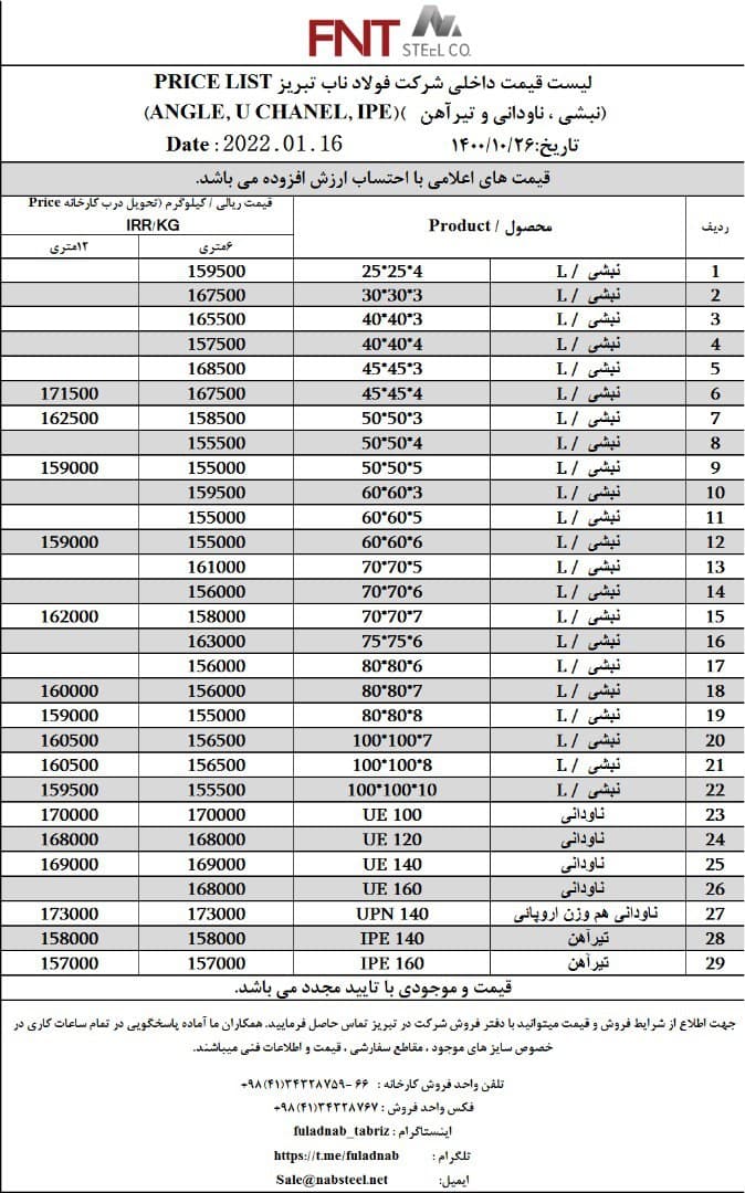 💢شرکت #فولاد_ناب_تبریز ✅تولیدکننده انواع نبشی ناودانی و تیرآهن #فولاد_ناب_کیفیت_ناب ☎️04134328759-66 📱09018013876 🌐www.nabsteel.com 🆔 @fuladnab